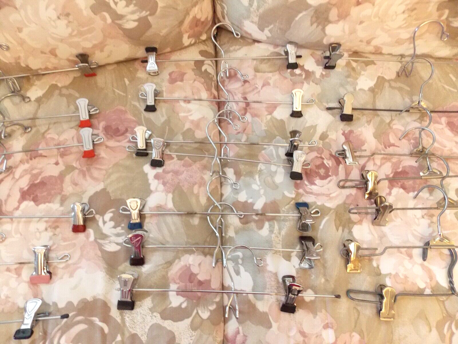 как выглядит Lot of 20 Vintage Metal Chrome Rubber Clip Skirt Pant Clip Clothes Hangers фото