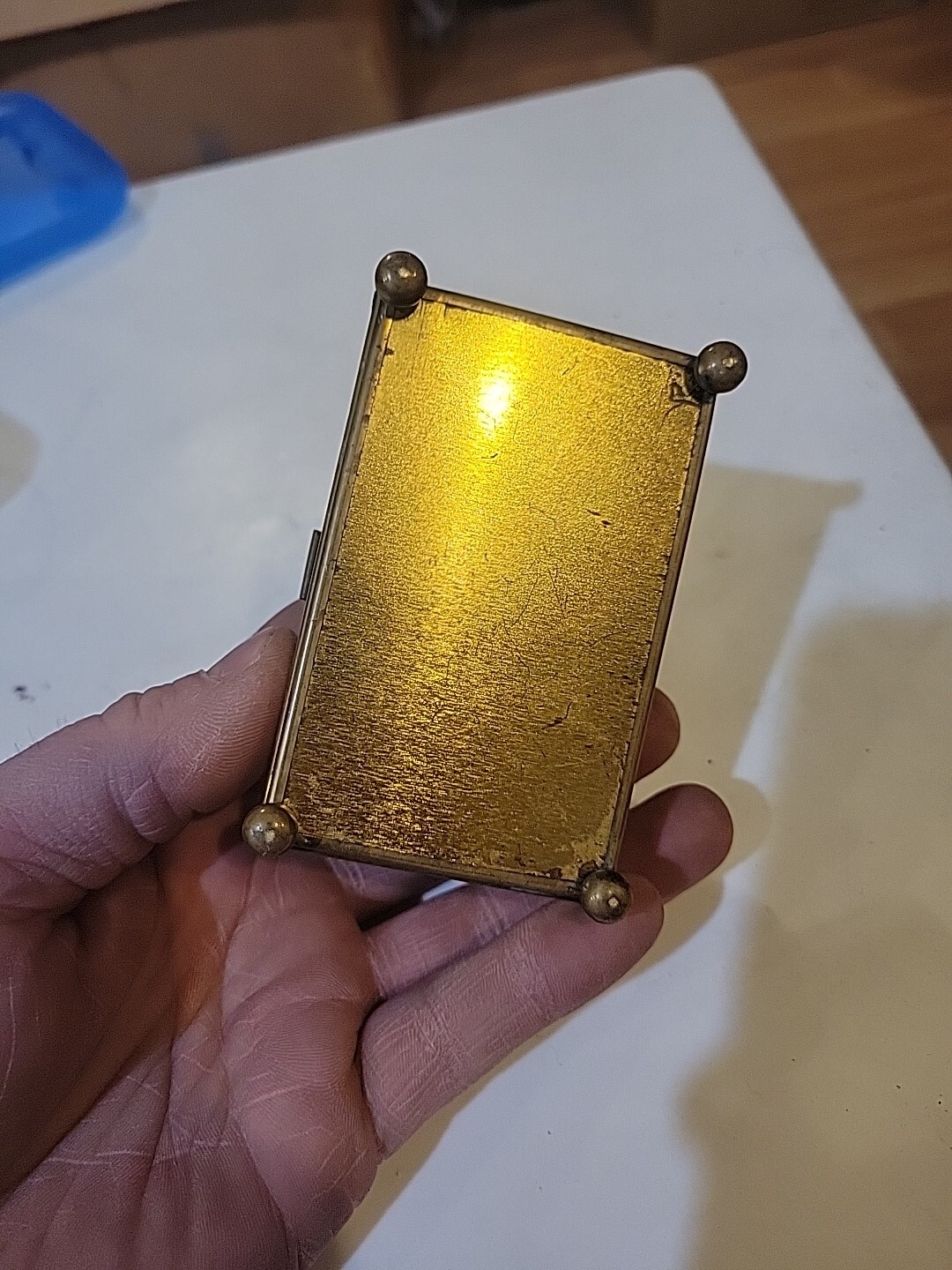 как выглядит Vintage Brass Glass Display Trinket Jewelry Box Floral Etched Mirrored Footed E фото