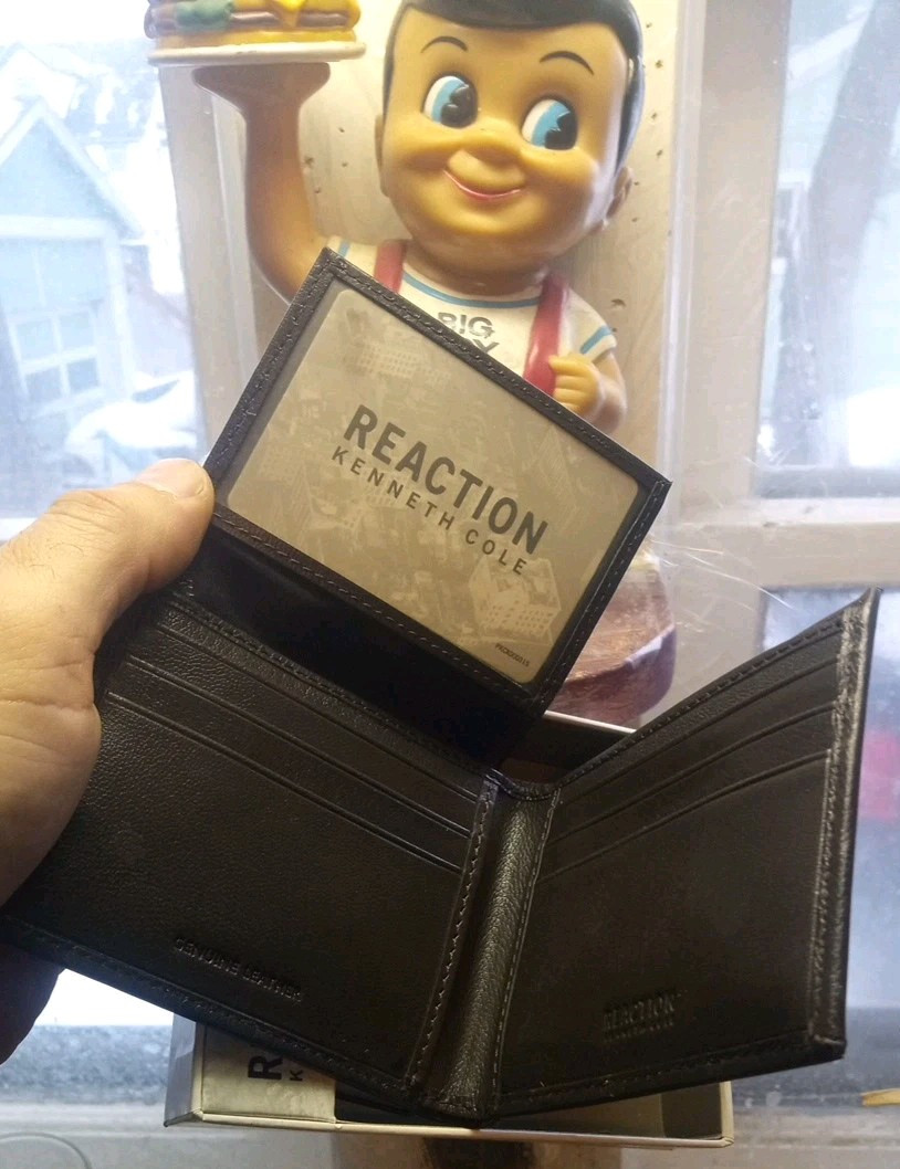 как выглядит Kenneth Cole REACTION Mens RFID Protection Leather Bifold Wallet Brown фото