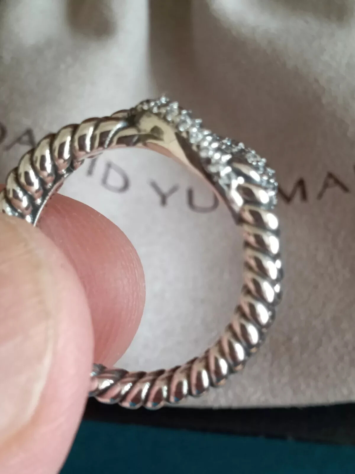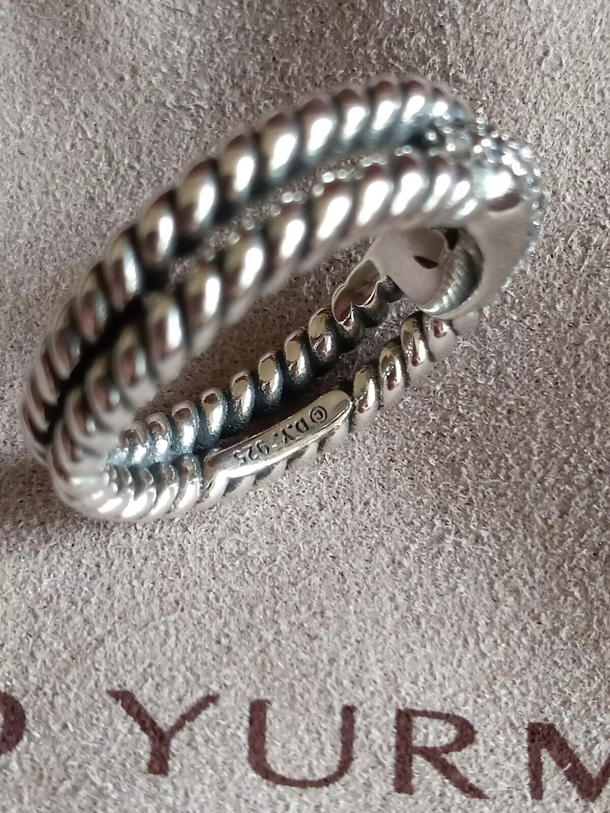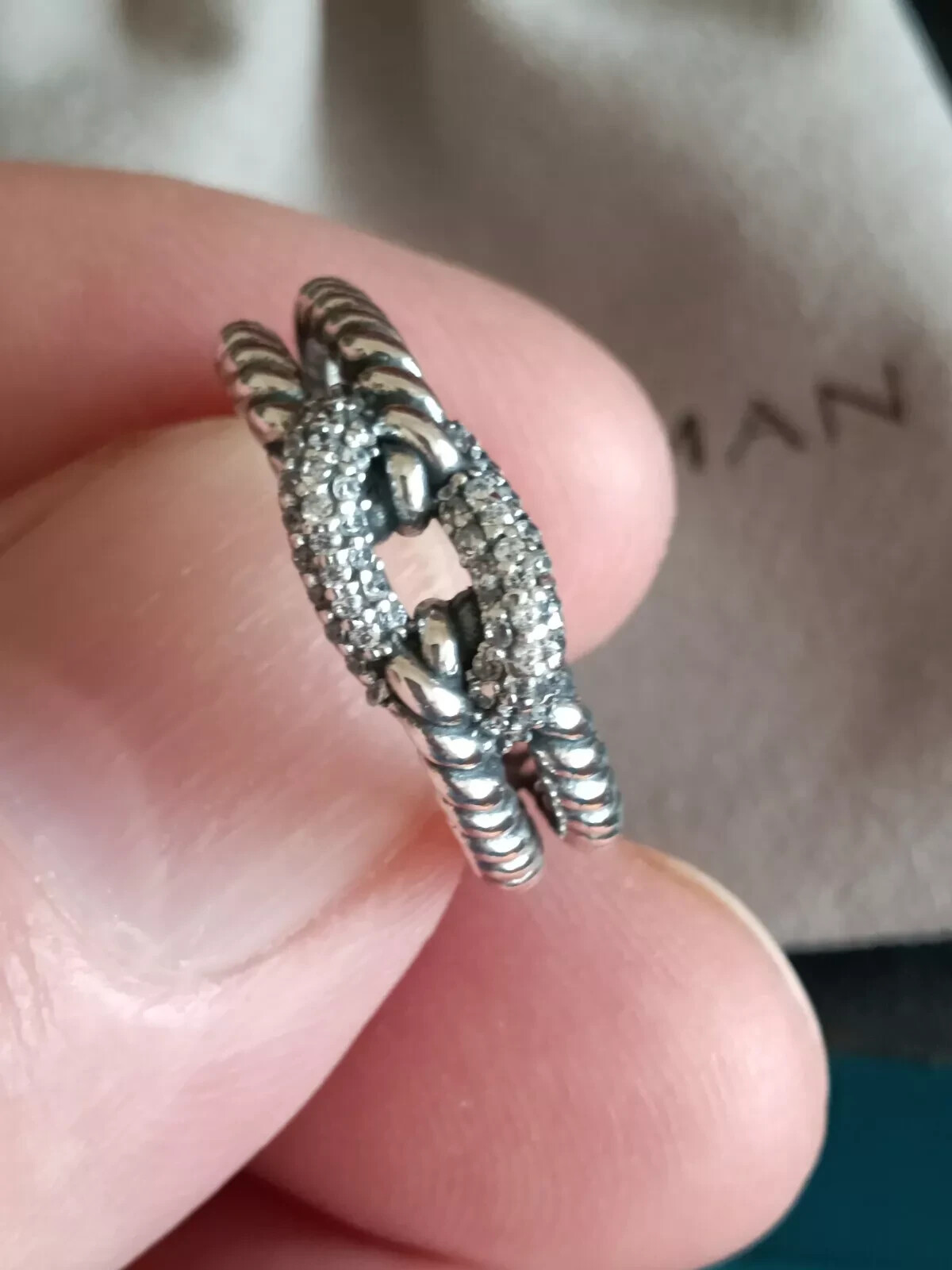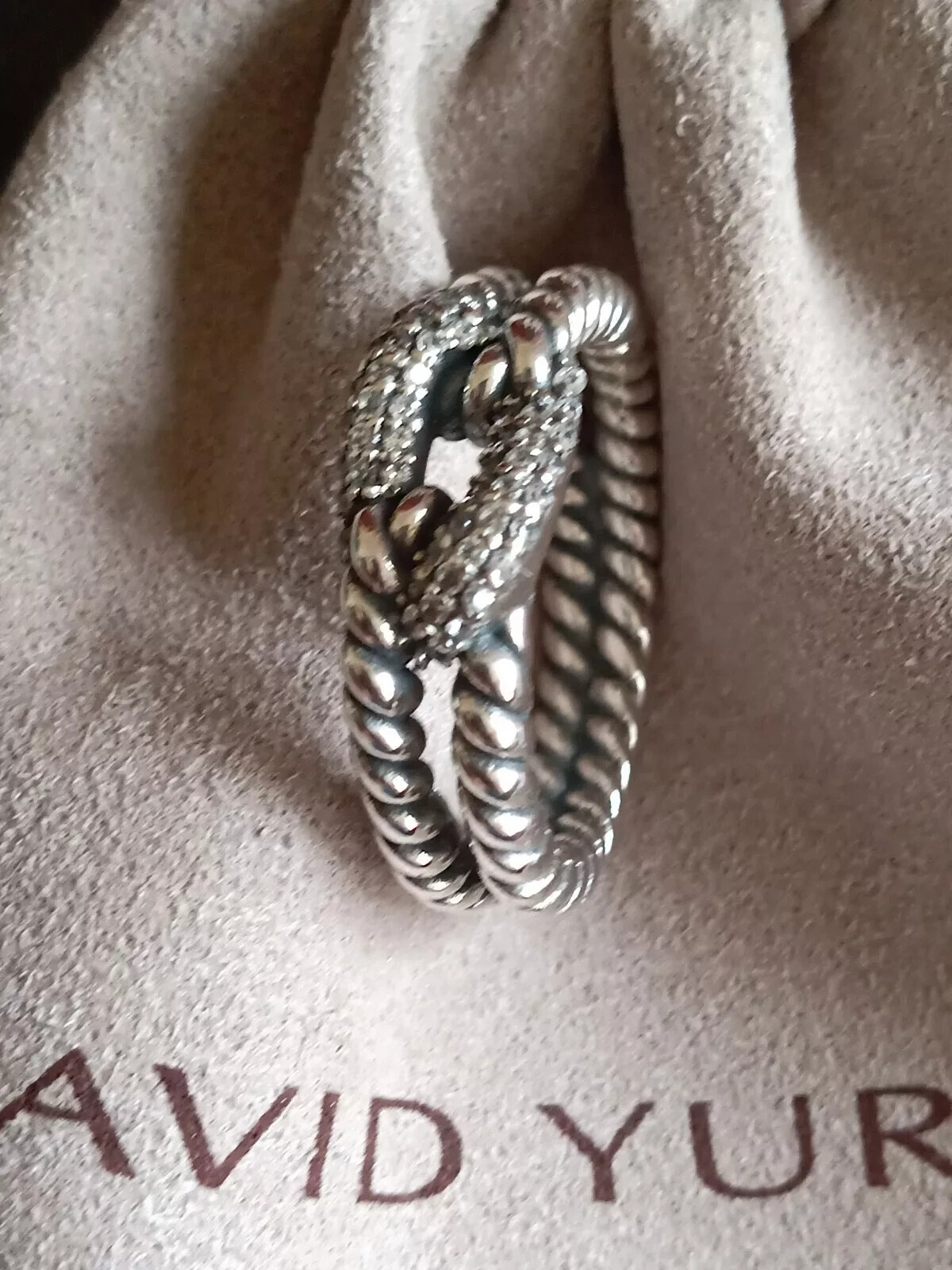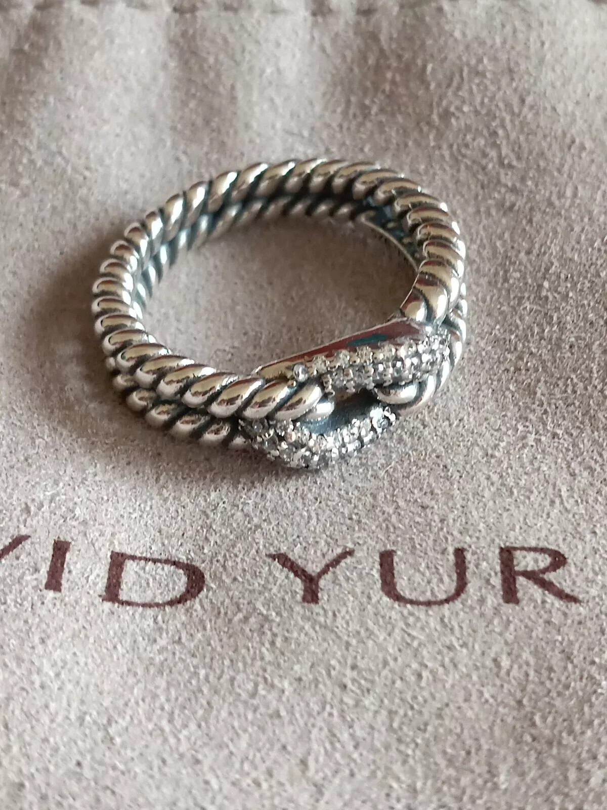 как выглядит David Yurman Sterling Silver Three Row Diamond Cable Loop Ring Size 7. S-74 фото