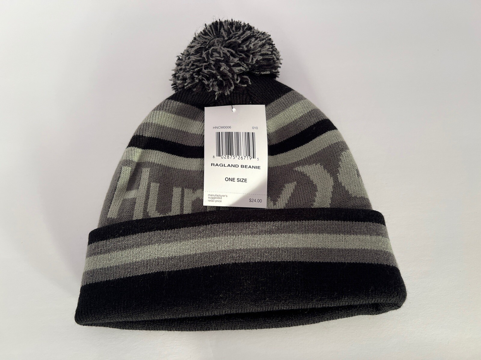 Hurley Ragland Winter Beanie Knit Hat Gray and Black One Size Pom Pom New/tags