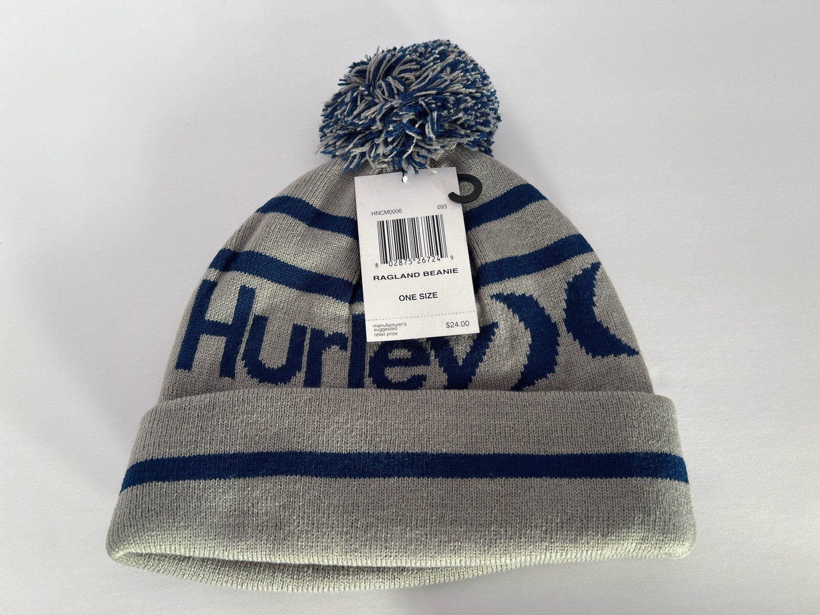 New/Tags Hurley Blue Gray Men's Ragland Winter Beanie One Size Ski Cap Pom Pom