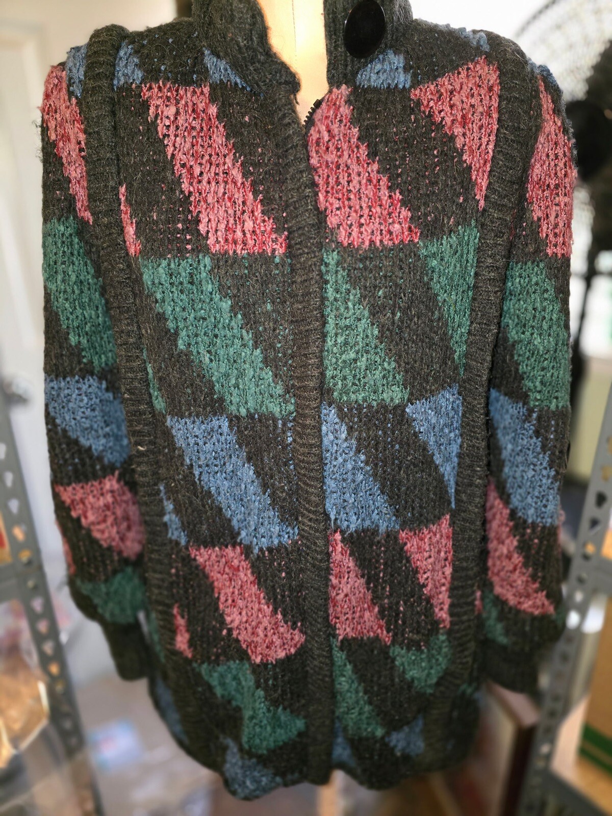 как выглядит Vintage Carlisle Couture Long Sweater Jacket Womens Size Medium Colorful Funky фото