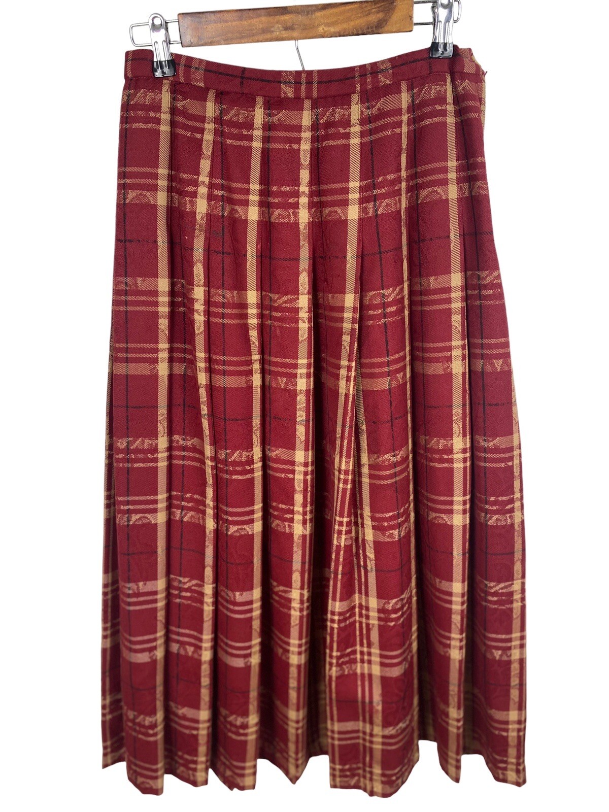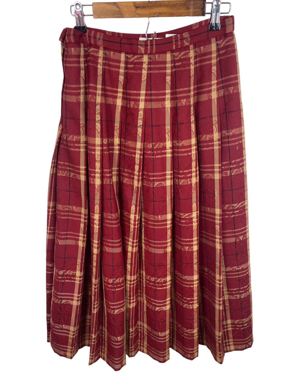 Pendleton Maxi Skirt Size 8 Dk Red Plaid Floral Long Vintage Wool Dark Academia