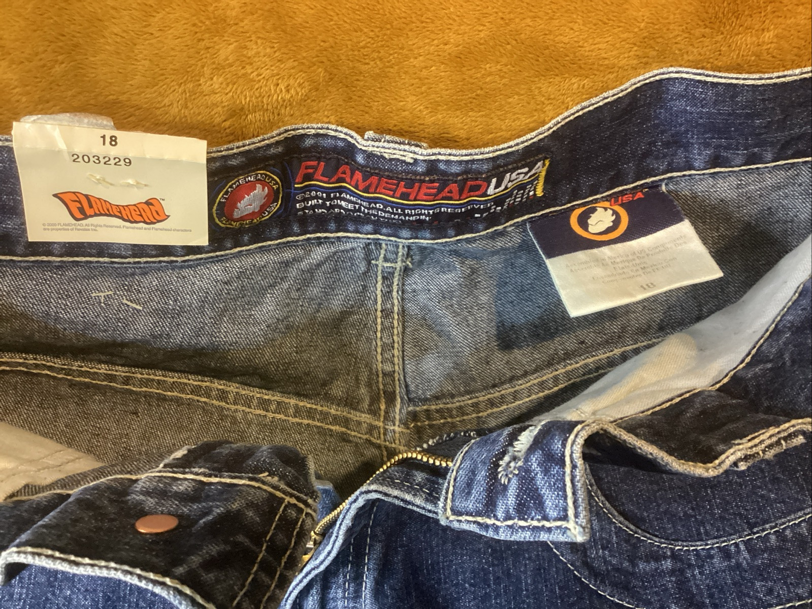 DEADSTOCK Flamehead USA Jeans Y2K Skater RARE Size 18 NEW WITH TAGS