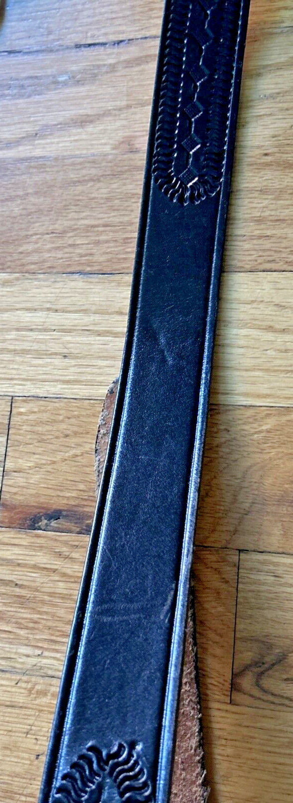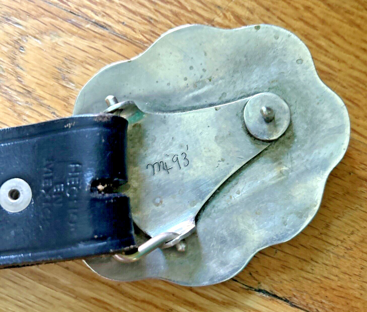 Horse Head Belt Buckle and Black Leather Belt 47 in Made in Mexico