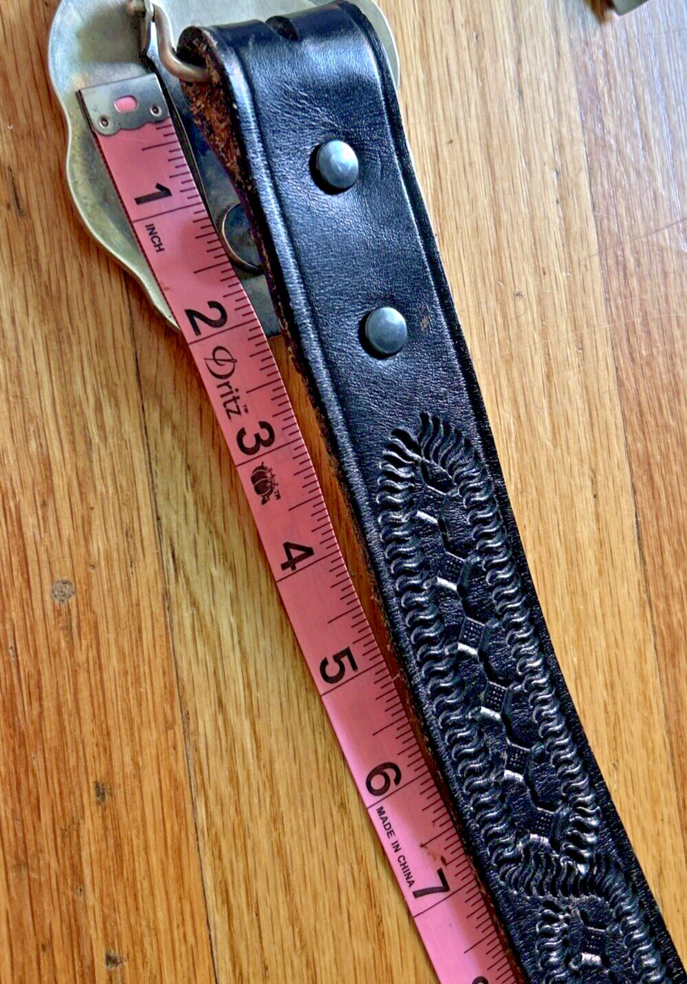 как выглядит Horse Head Belt Buckle and Black Leather Belt 47 in Made in Mexico фото