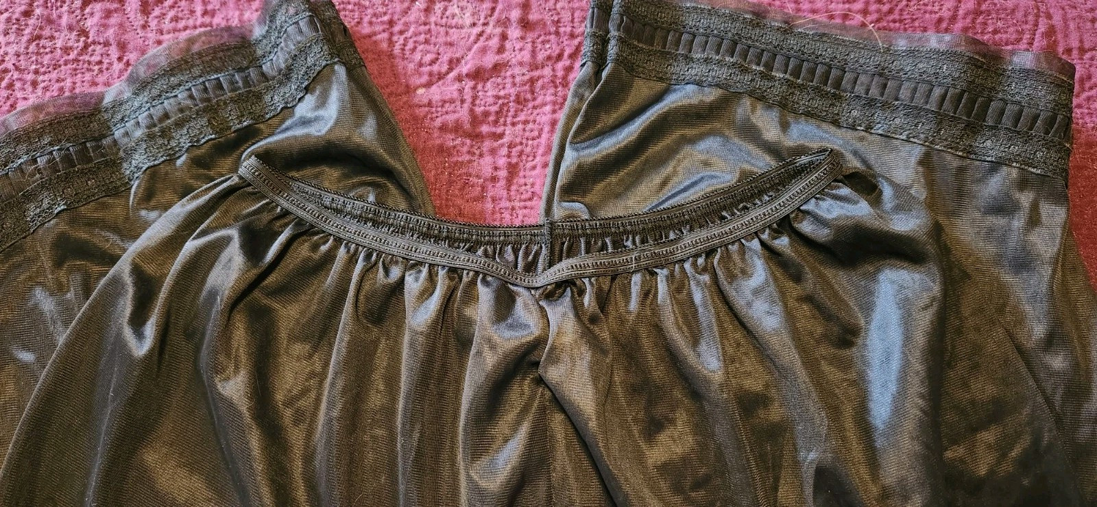 как выглядит Vanity Fair Nylon Pettipants Bloomer Granny Panty Blk Lace Trim Union Tag VTG фото