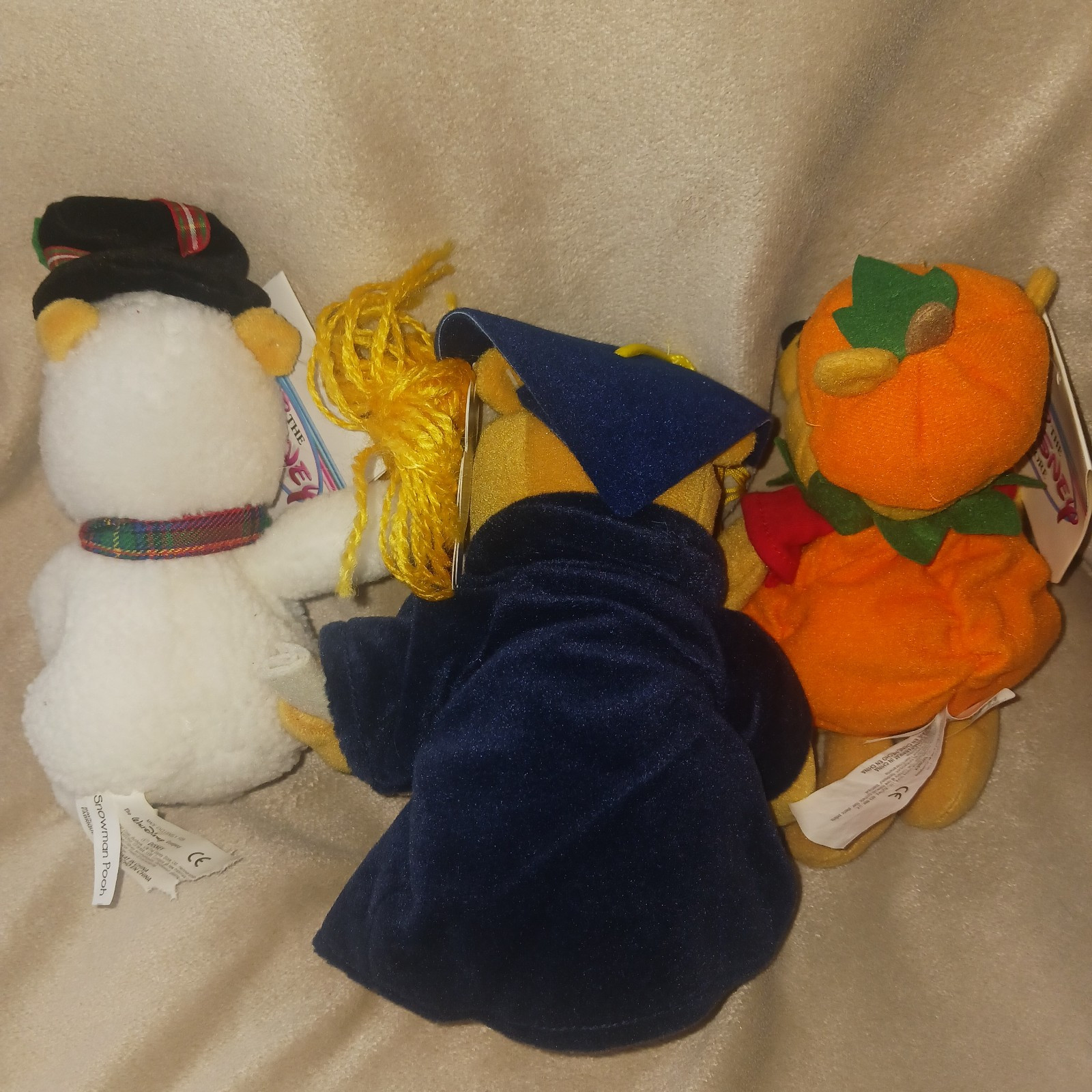 • Disney Store Winnie the Pooh Bean Plush Lot of 3 - Snowman Graduation Pumpkin