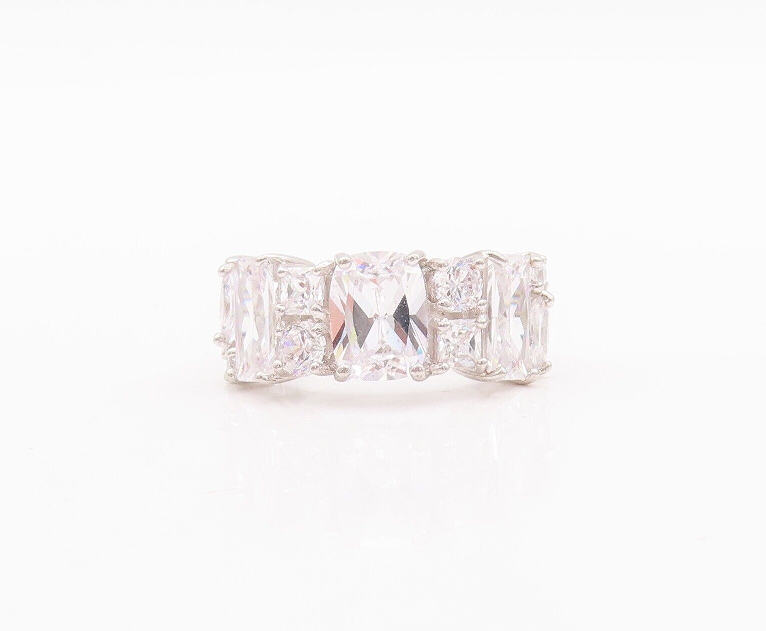 925 Sterling Silver Vintage Ring Multi Shape Cut CZ Inlay Band Sz 5 RG28560