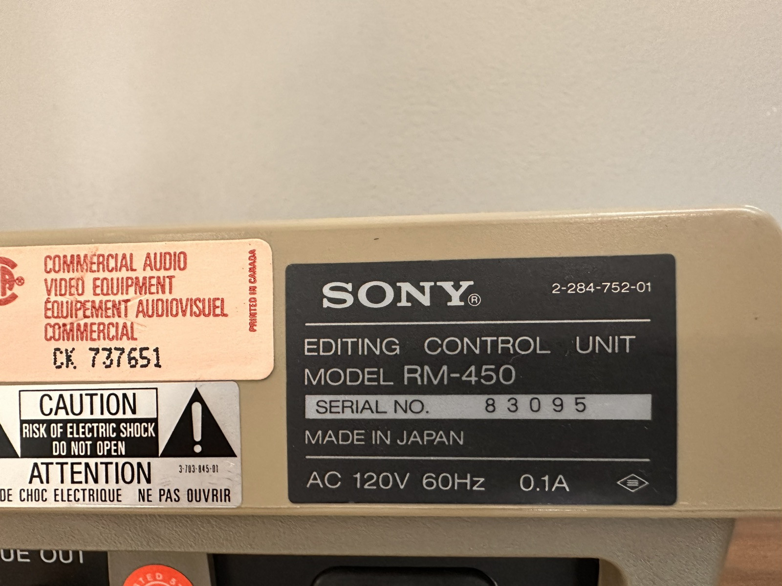 Sony RM-450 Editing Control Unit Video Controller Powers On, Untested