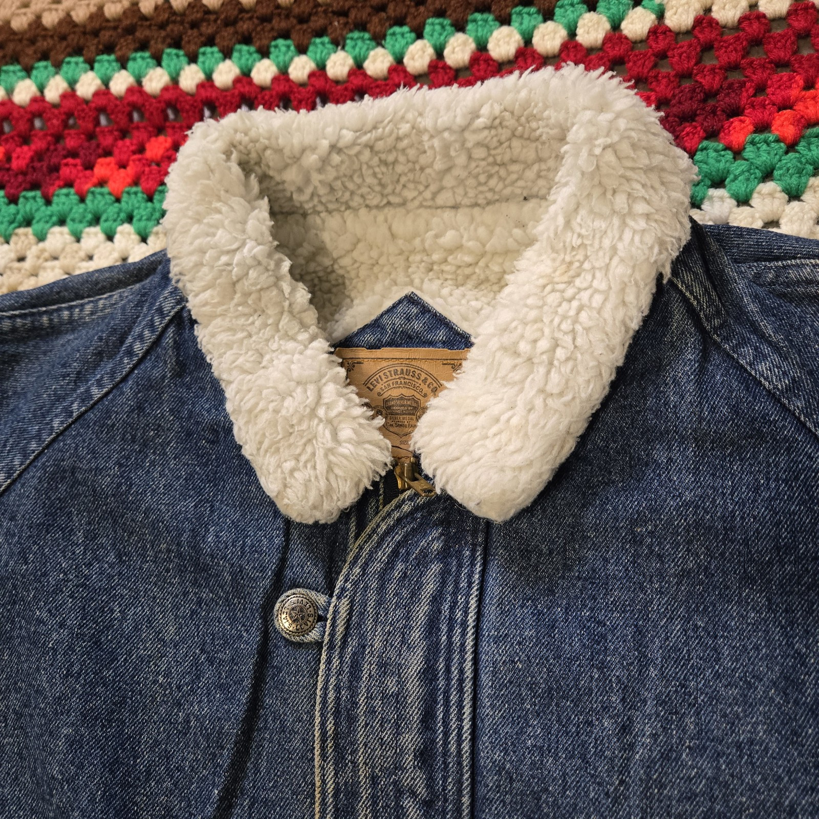 Vtg 80s Levi Strauss Silver Tab Sherpa Lined Jean Jacket Large USA Blue Denim
