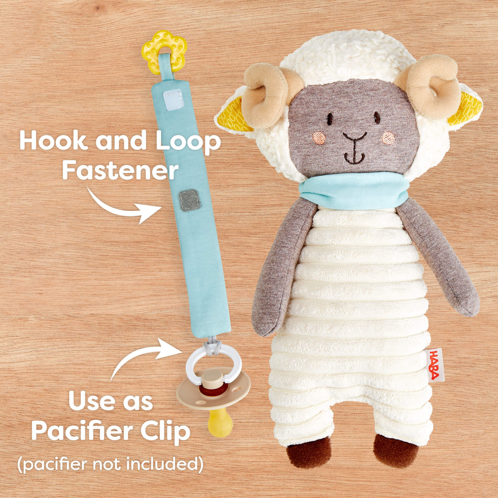 HABA Woolbert the Ram Lovey Set - Stuffed Animals for Babies, Pacifier Clips,