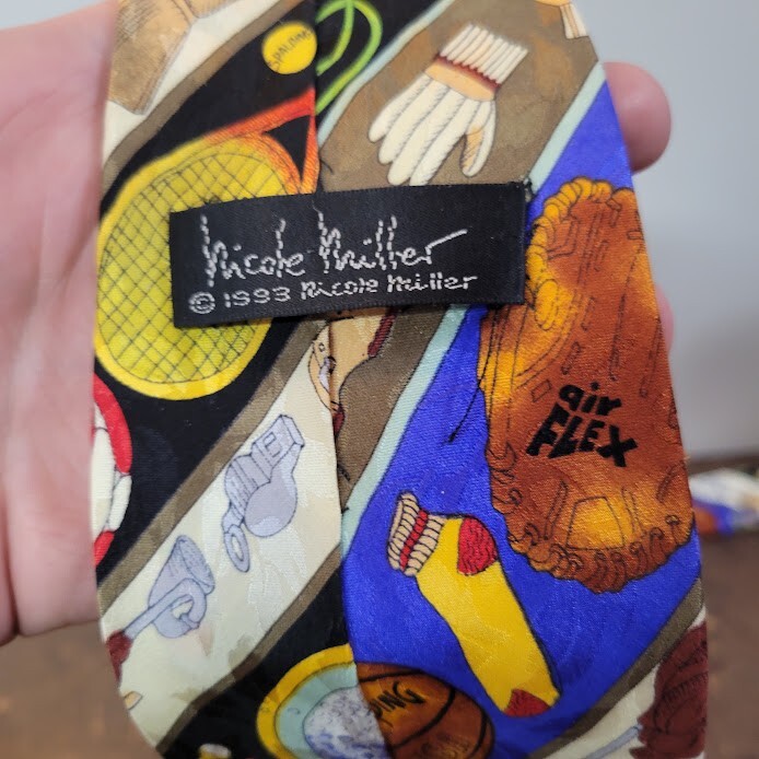Vintage Nicole Miller Silk Necktie Sports Baseball Football 1993