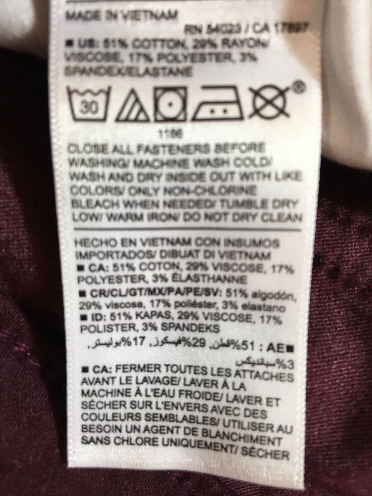 Garment Care: Machine Washable