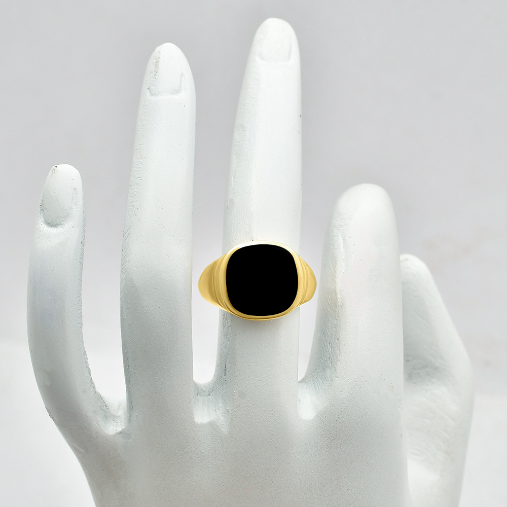 как выглядит Bold Cushion Green/Black Onyx Statement Ring Jewelry 18K Gold Over Brass TGR1012 фото
