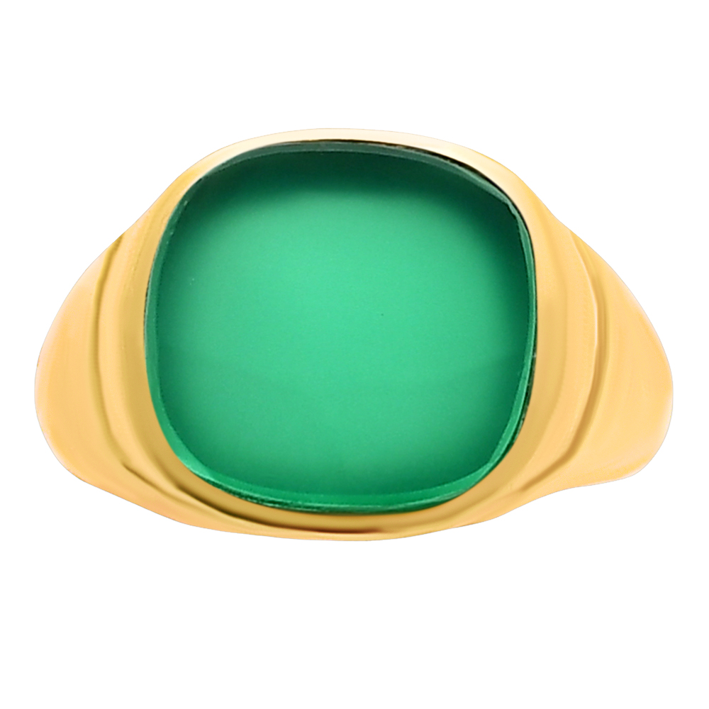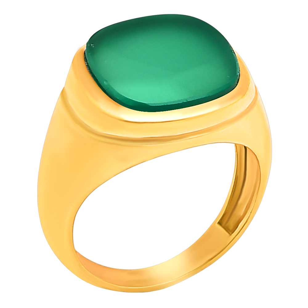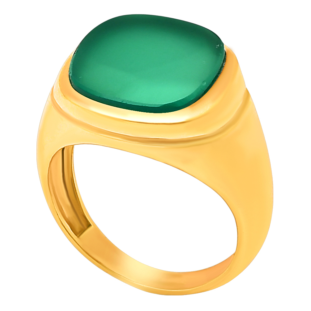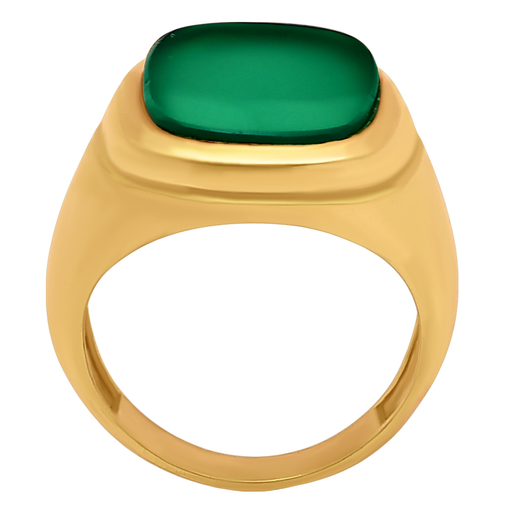 как выглядит Bold Cushion Green/Black Onyx Statement Ring Jewelry 18K Gold Over Brass TGR1012 фото