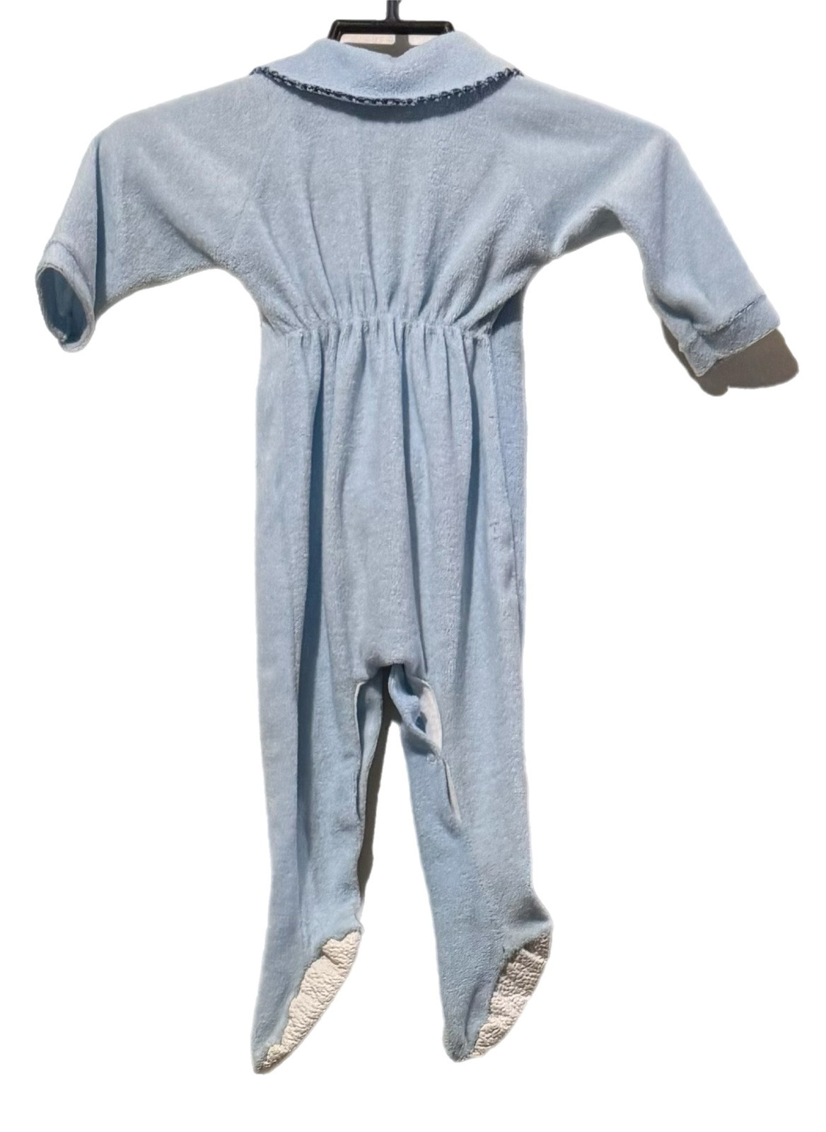Montgomery Ward Y Vintage One-Piece Pajama M 9-12 mos Blue Snaps 1970s EUC