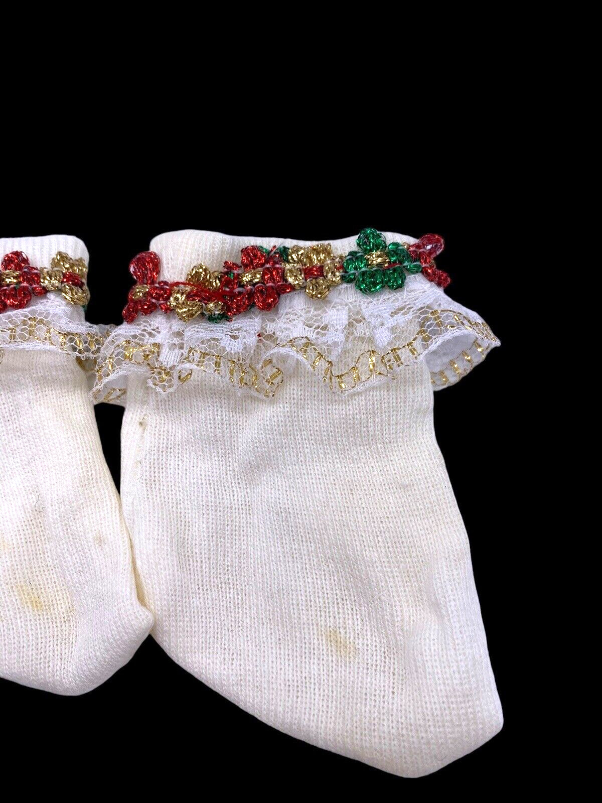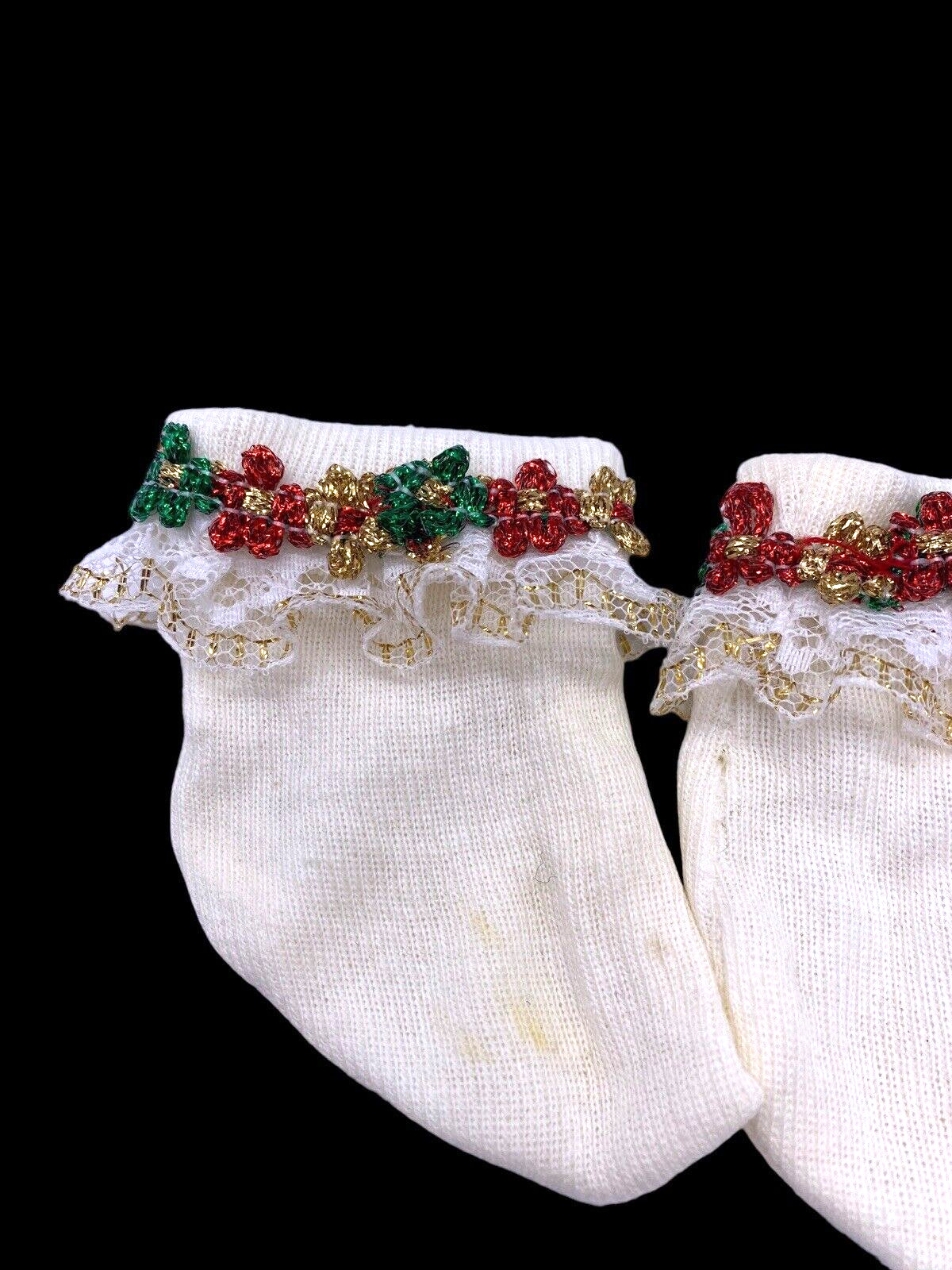 Vintage Baby Girl Lace Socks 0-6M Months White Holiday Christmas 90s Doll Bear