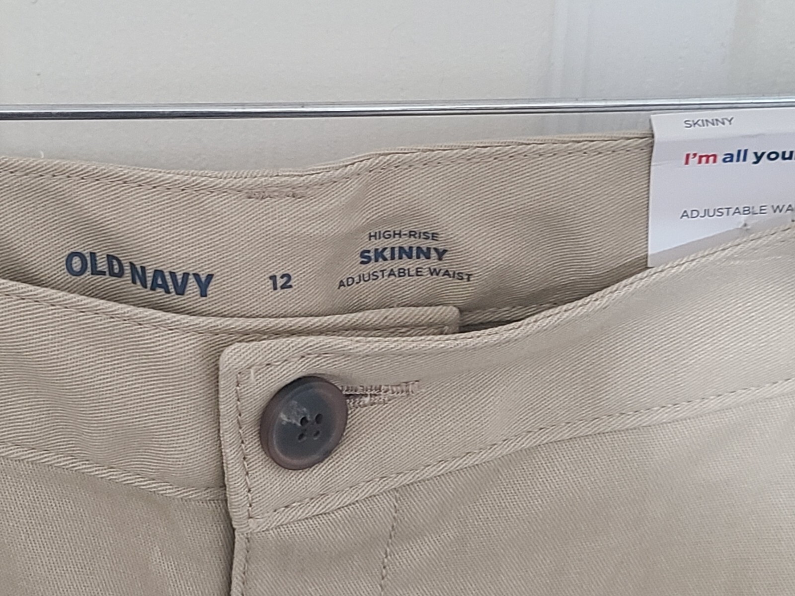 как выглядит Womens Old Navy High-Rise Skinny Adjustable Waist Size 12 Pants Beige фото