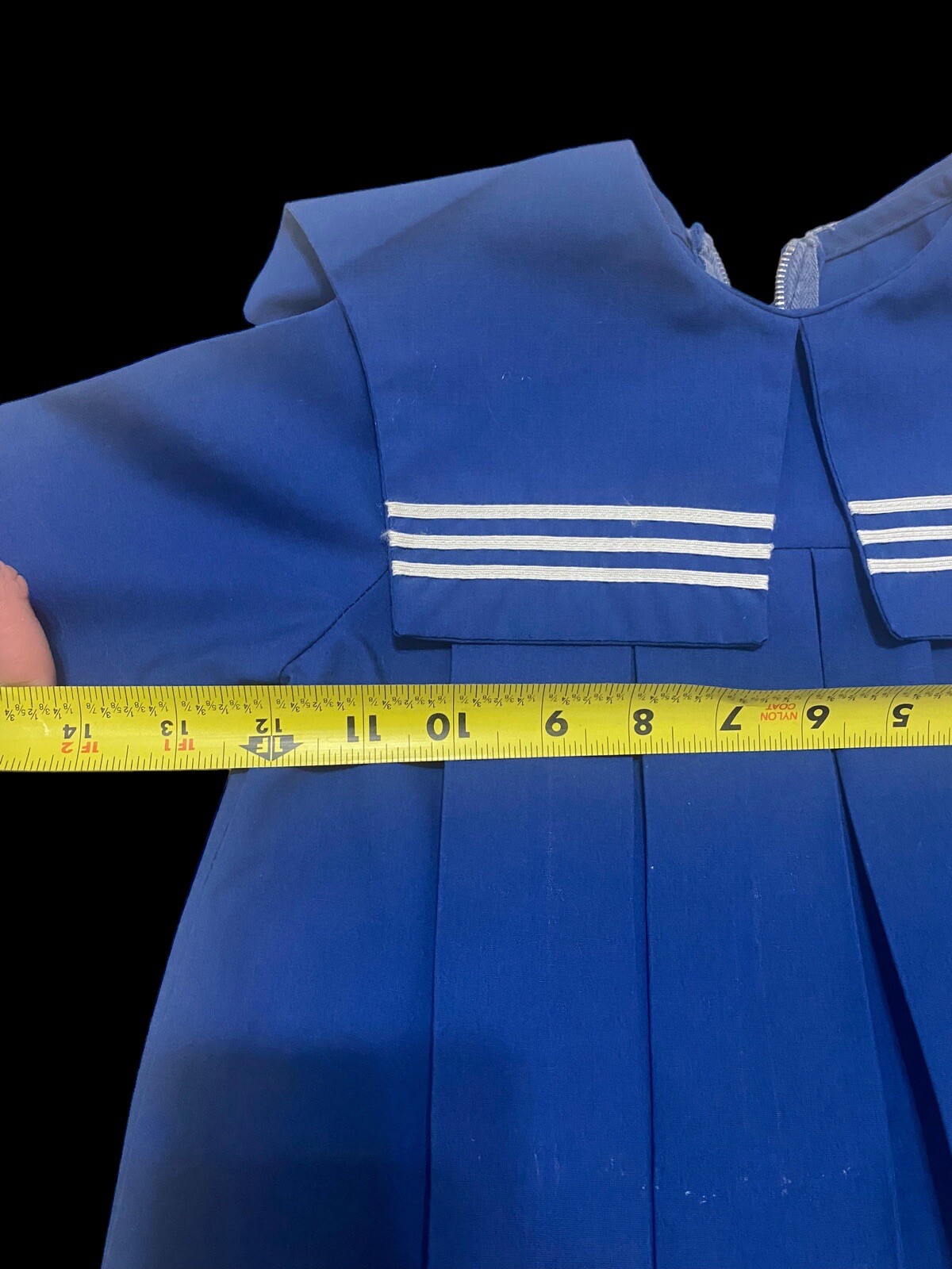 Vintage Sailor Dress Baby Girls Size 6-9M Blue White Pinafore 1950s Nautical