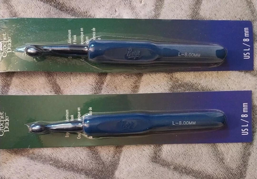 Boye The Crochet Dude - Ergonomic Aluminum Crochet Hook Set of 2. US L 8mm. New.