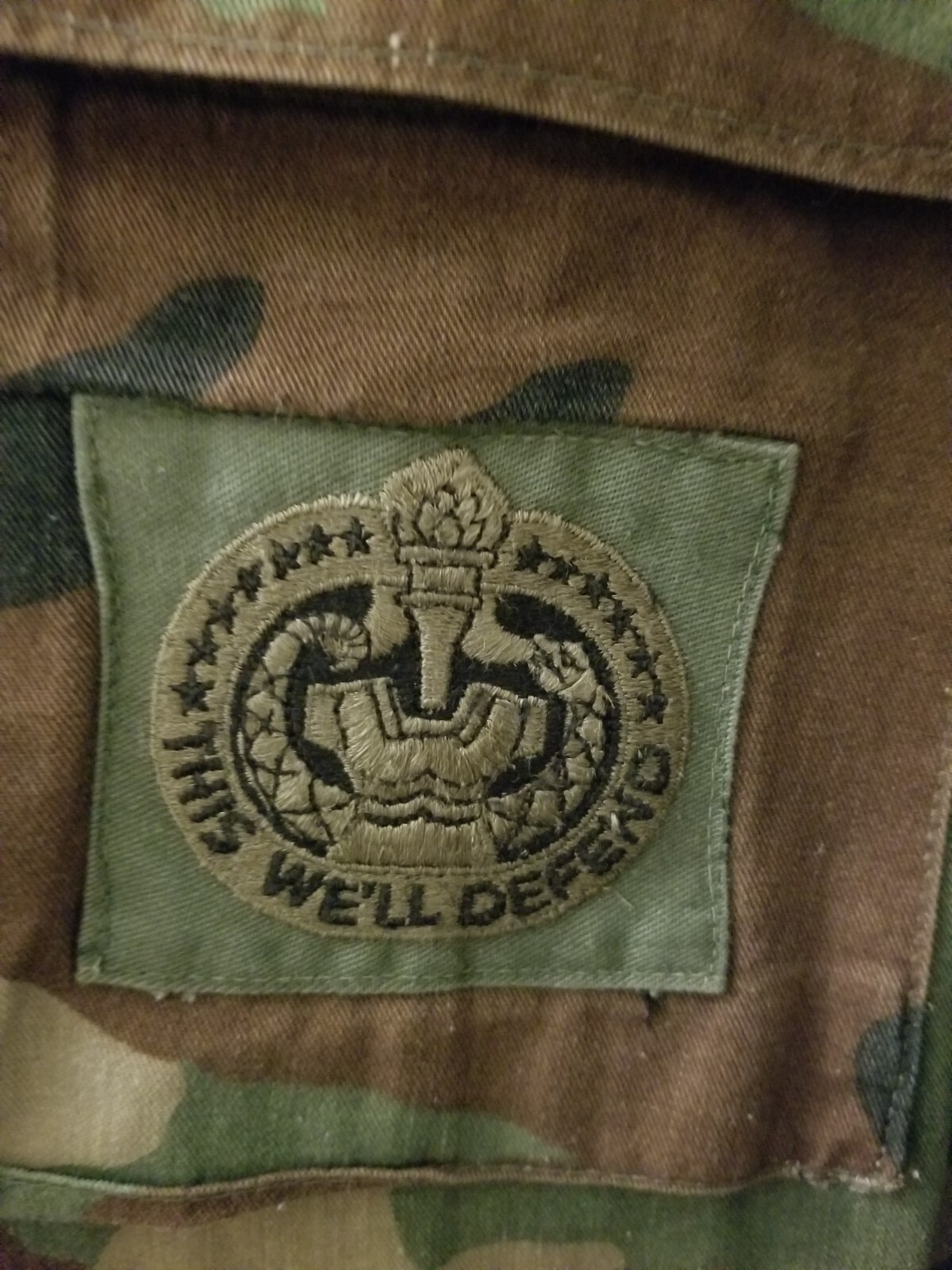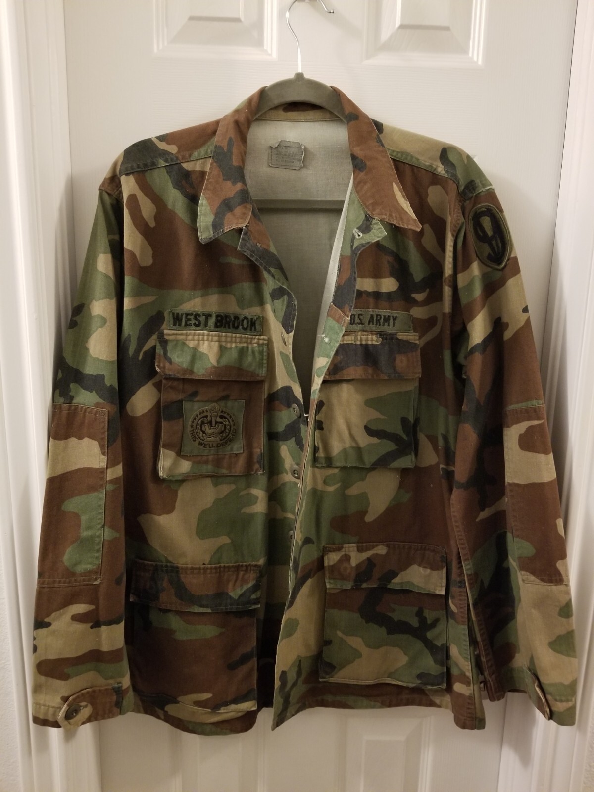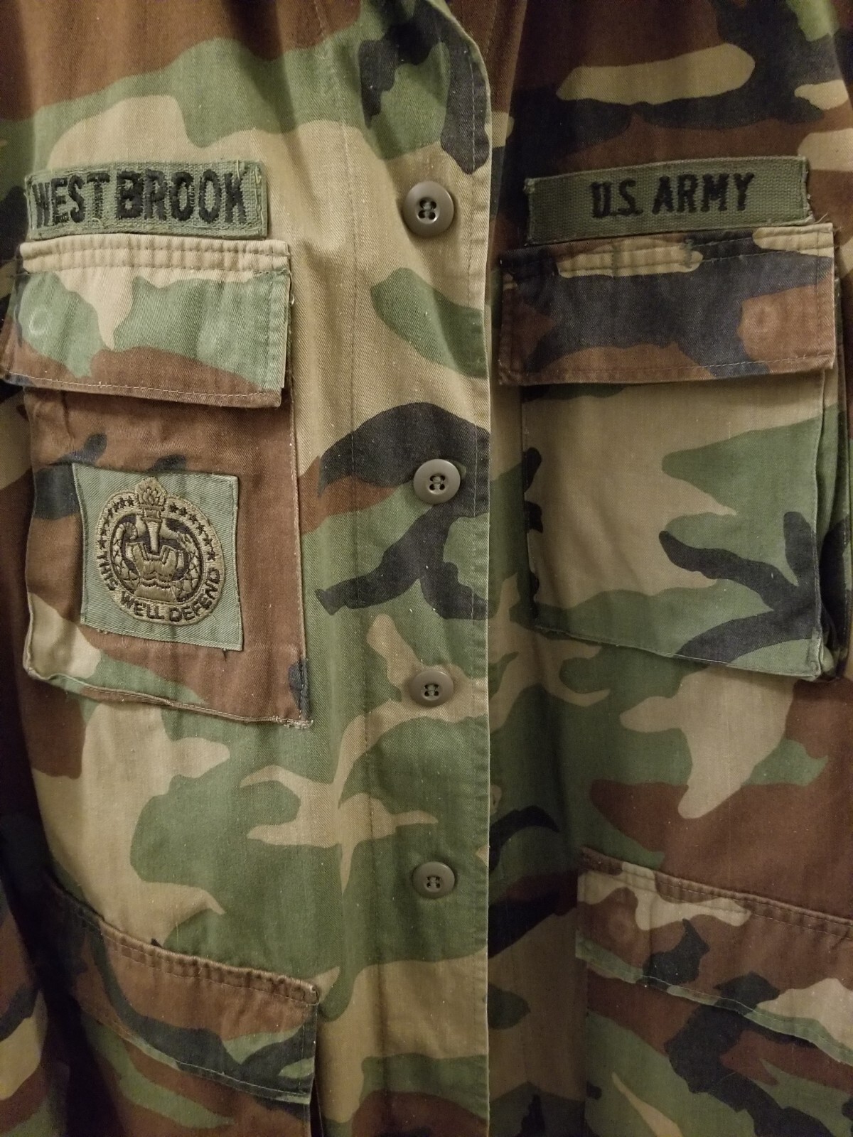 • US M-65 Field Jacket Med Long Woodland Camo Army Drill Inst - 95th Inf Patches