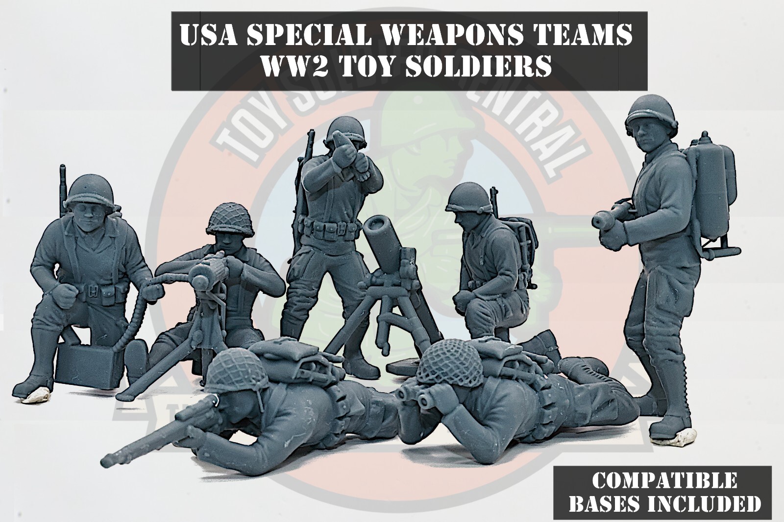 World War 2 Toy Soldiers - USA Special Weapons Teams 54mm - 1:32 With Bases