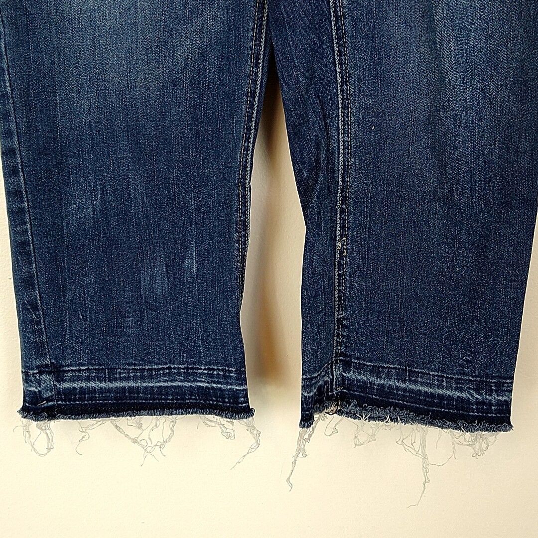 Maurices Womens sz 7 8 Jeans Blue Denim Dark Wash Faded Cropped Frayed Hem