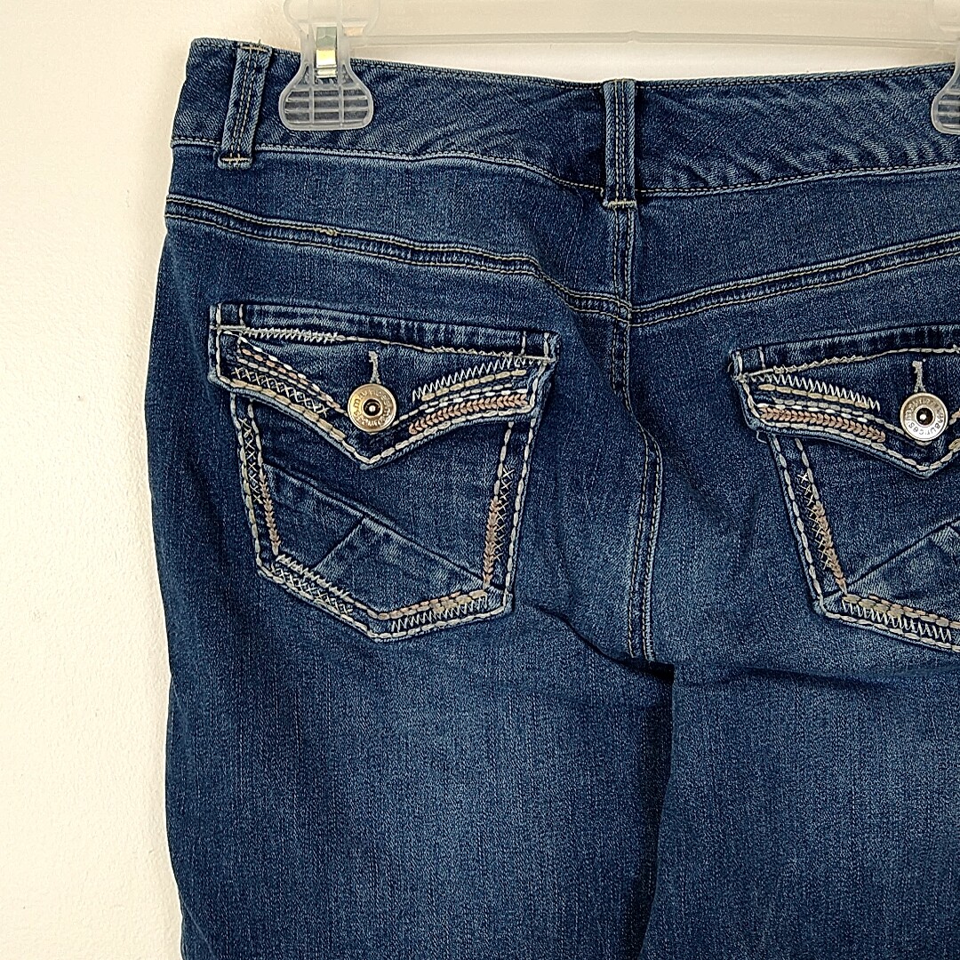 как выглядит Maurices Womens sz 7 8 Jeans Blue Denim Dark Wash Faded Cropped Frayed Hem фото
