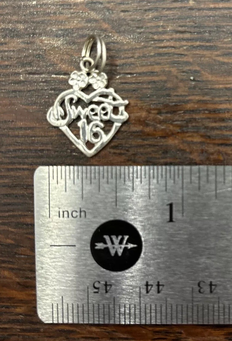 .925 Sterling Silver Girls Sweet 16 Charm For Necklace Or Bracelet Tiny .5