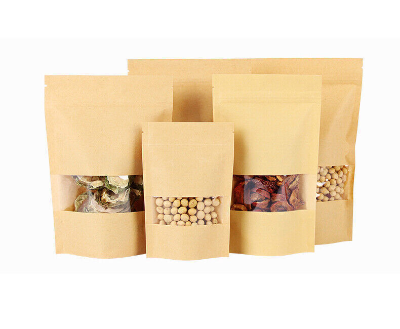 100pcs Kraft Paper Bag / Window Stand Up Pouch Zip Lock Resealable Heat Seal New