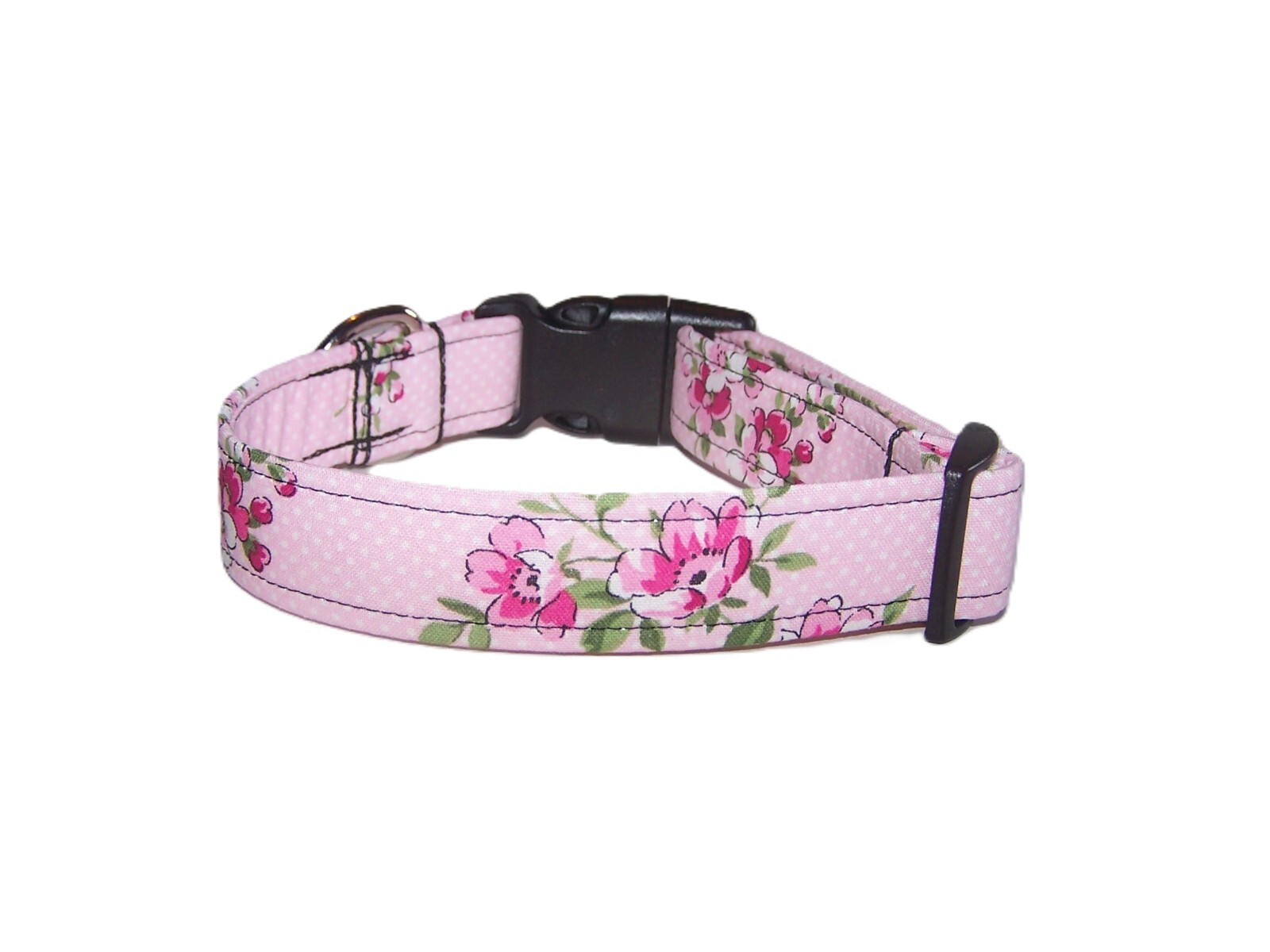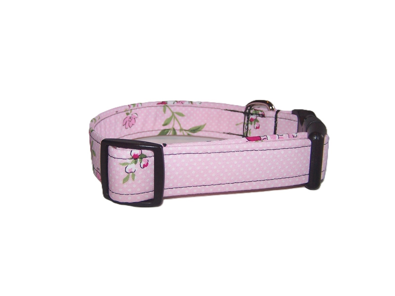 Wet Nose Designs Fun In Bloom Dog Collar Flowers on Pink Dots Spring Summer