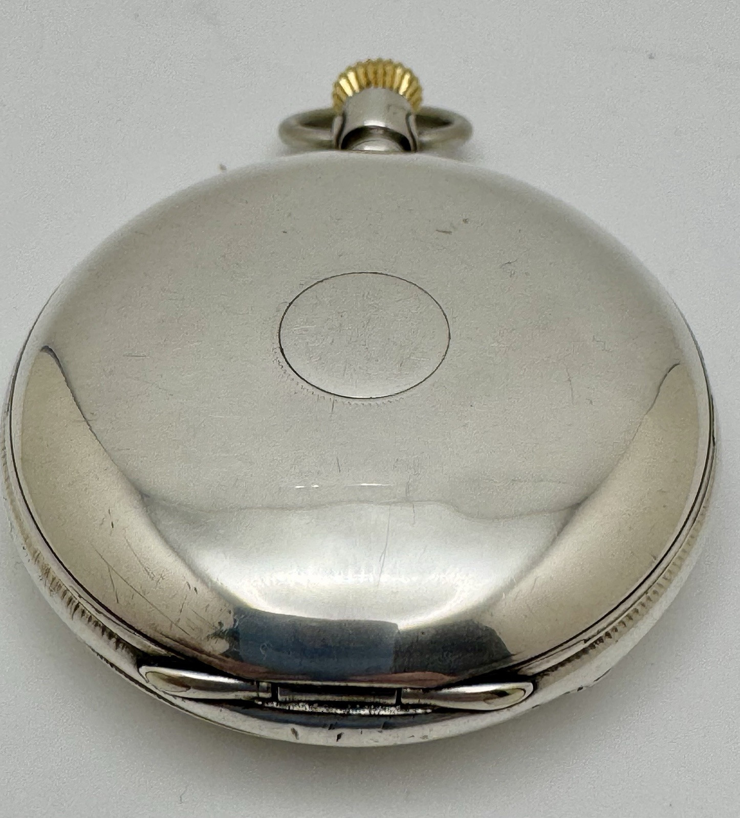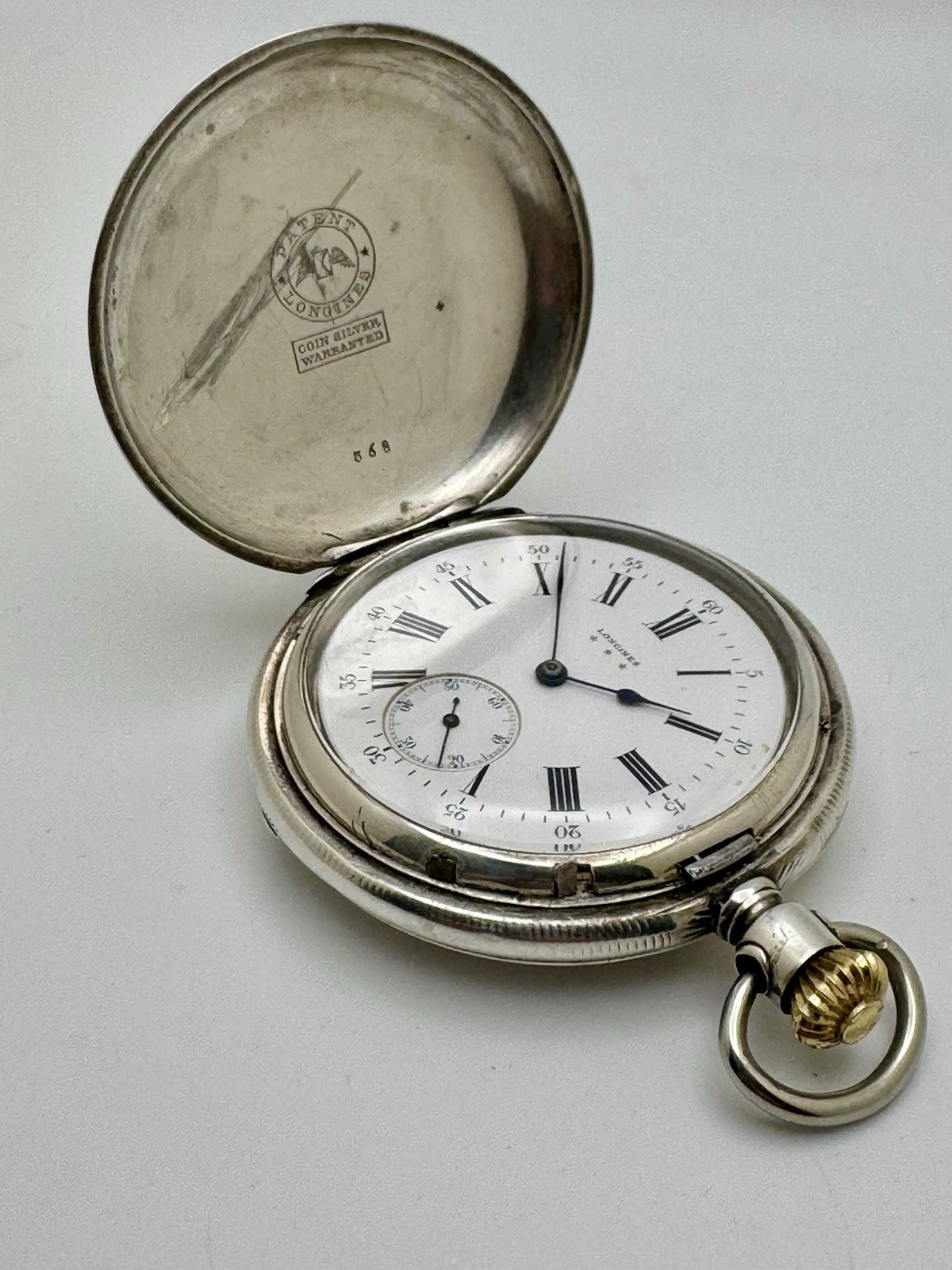 как выглядит LONGINES COIN SILVER POCKET WATCH 1901 Double Hunter Porcelain Dial Overhauled фото