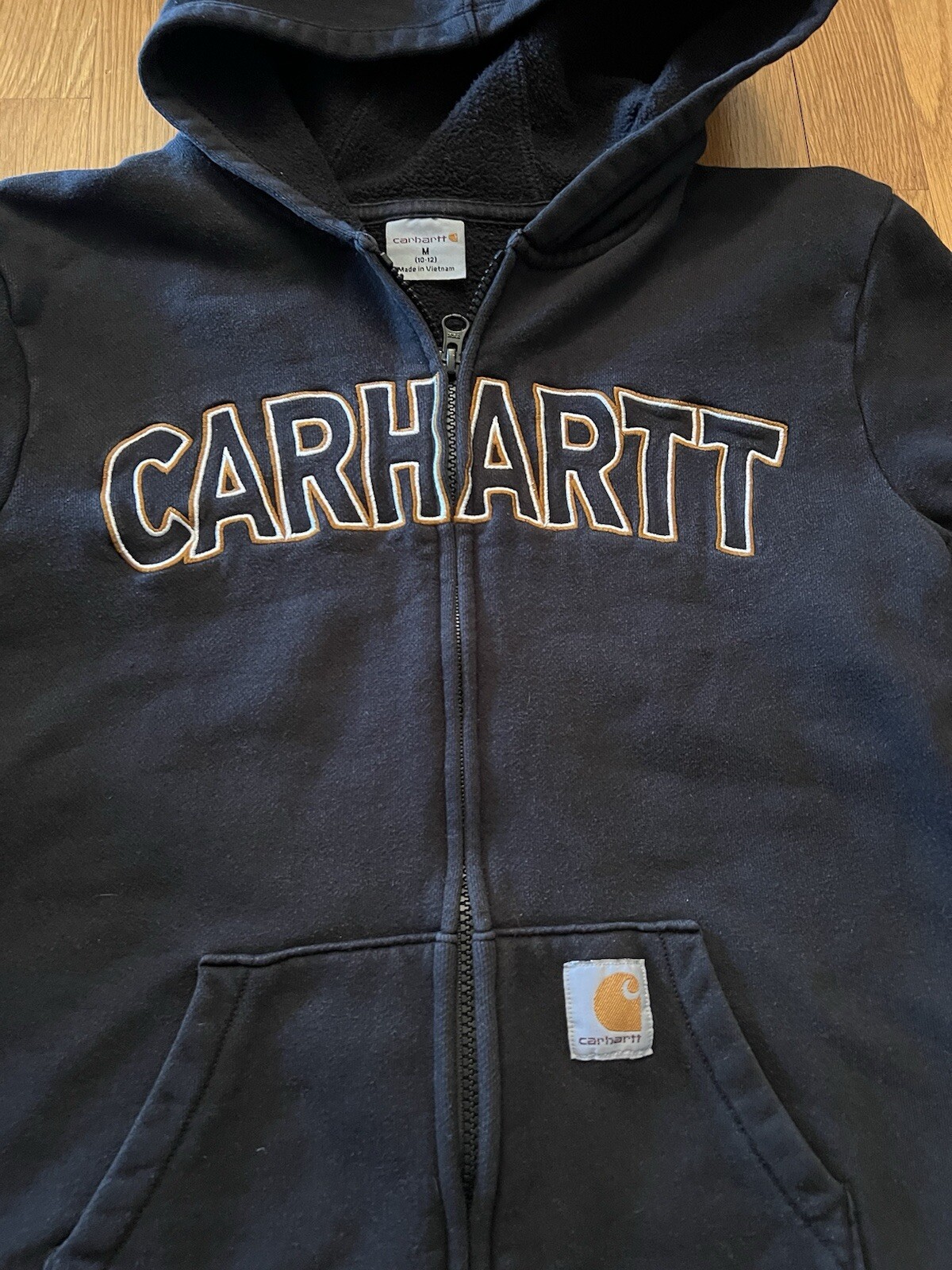 как выглядит Carhartt Boys Size Medium 10-12 Full Zip Up Hoodie Kids Youth Black фото