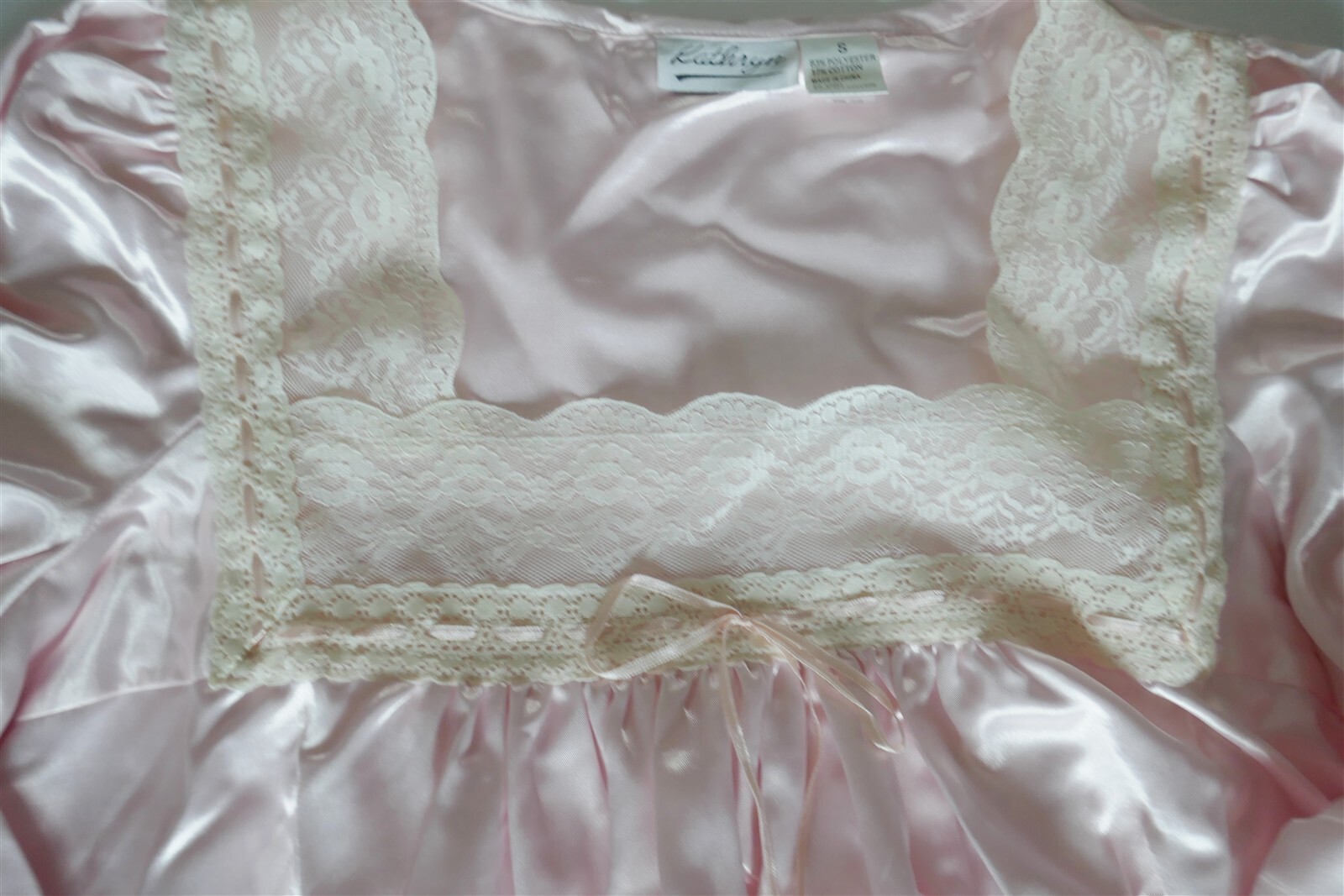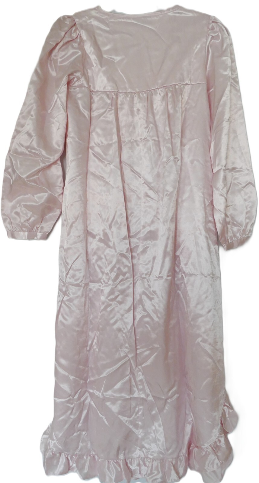 как выглядит VTG NWT Kathryn Pink Satin LS Long Nightgown Women S Poly/Cotton LACE Ruffle фото