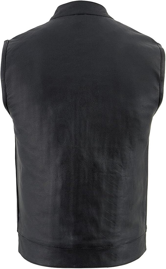 Men's Black Club Style SOA Zipper Leather Vest exterior Gun pocket single panel