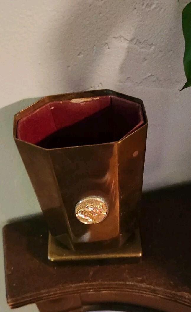 как выглядит Brass Eyeglass Holder VELVET LINED Desk Stand Pen Pencil Metal Cup VINTAGE MCM фото