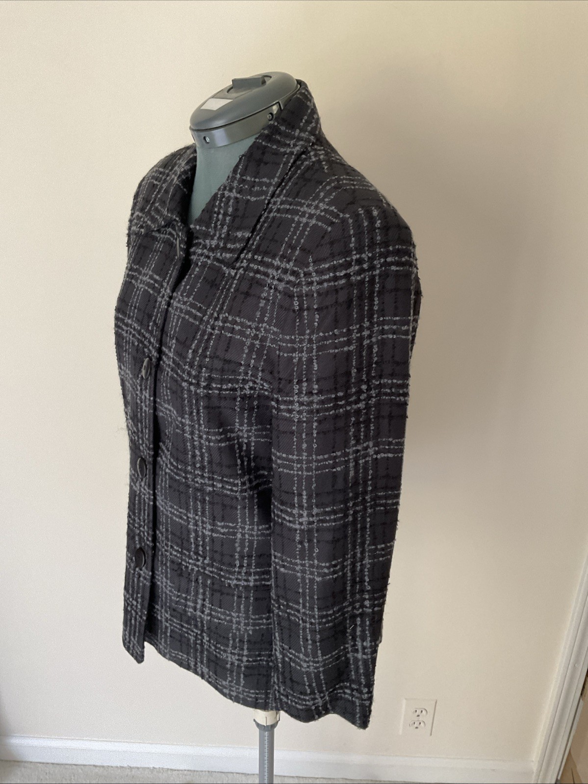 Vintage Rena Rowan For Saville Wool Plaid Charcoal Gray/Black Blazer SZ 6