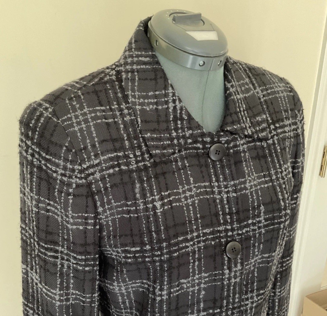 как выглядит Vintage Rena Rowan For Saville Wool Plaid Charcoal Gray/Black Blazer SZ 6 фото