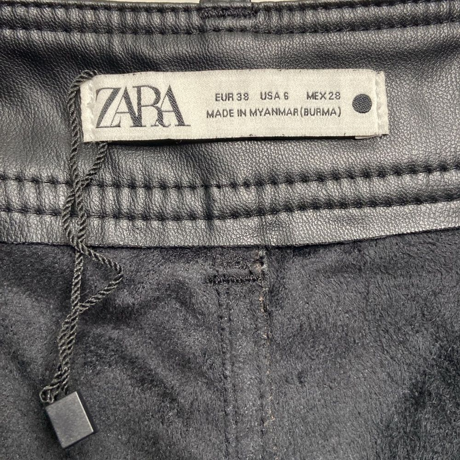 как выглядит zara marine straight pleather wide leg pant high waist Jean 6 black patch pocket фото