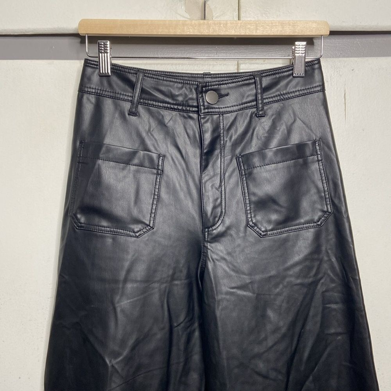 zara marine straight pleather wide leg pant high waist Jean 6 black patch pocket