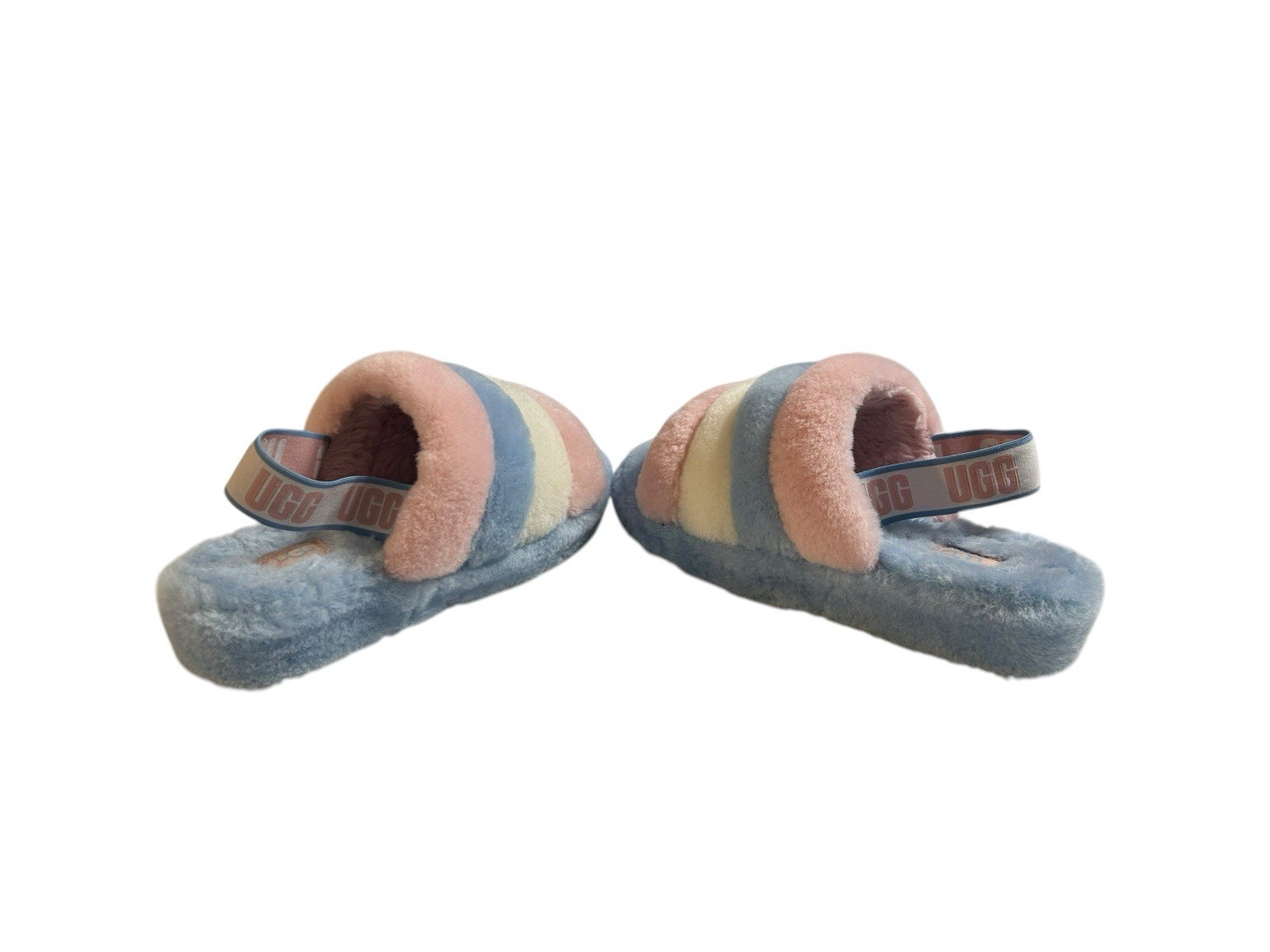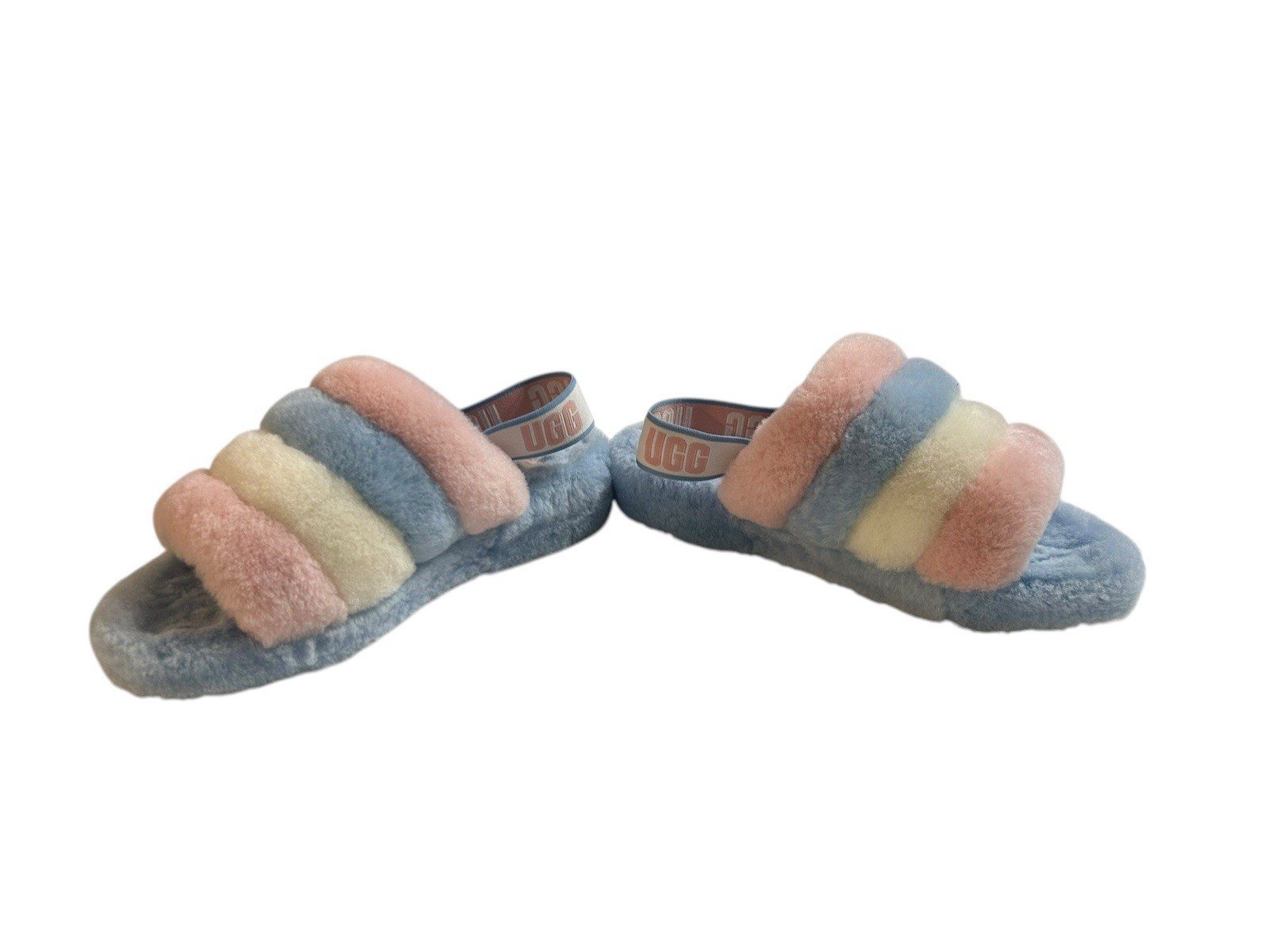 Ugg Australia Fluff Yeah Sandals Slip Ons Slippers Womens Size 9 Pink White Blue