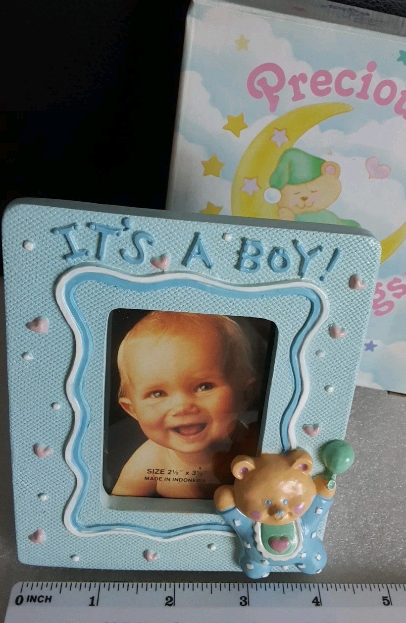 Baby Boy Photo Picture Frame NWT By Russ Fits 2x3 Photo Blue 5x4
