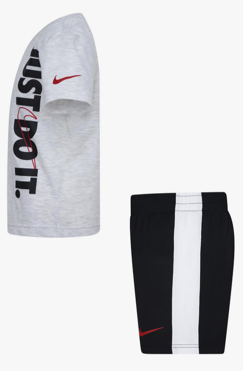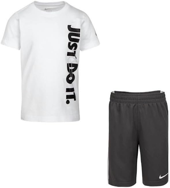 Nike Set 2 PC Boy's 'Just Do It' T-Shirt Shorts Set White/Iron Grey, 4/6
