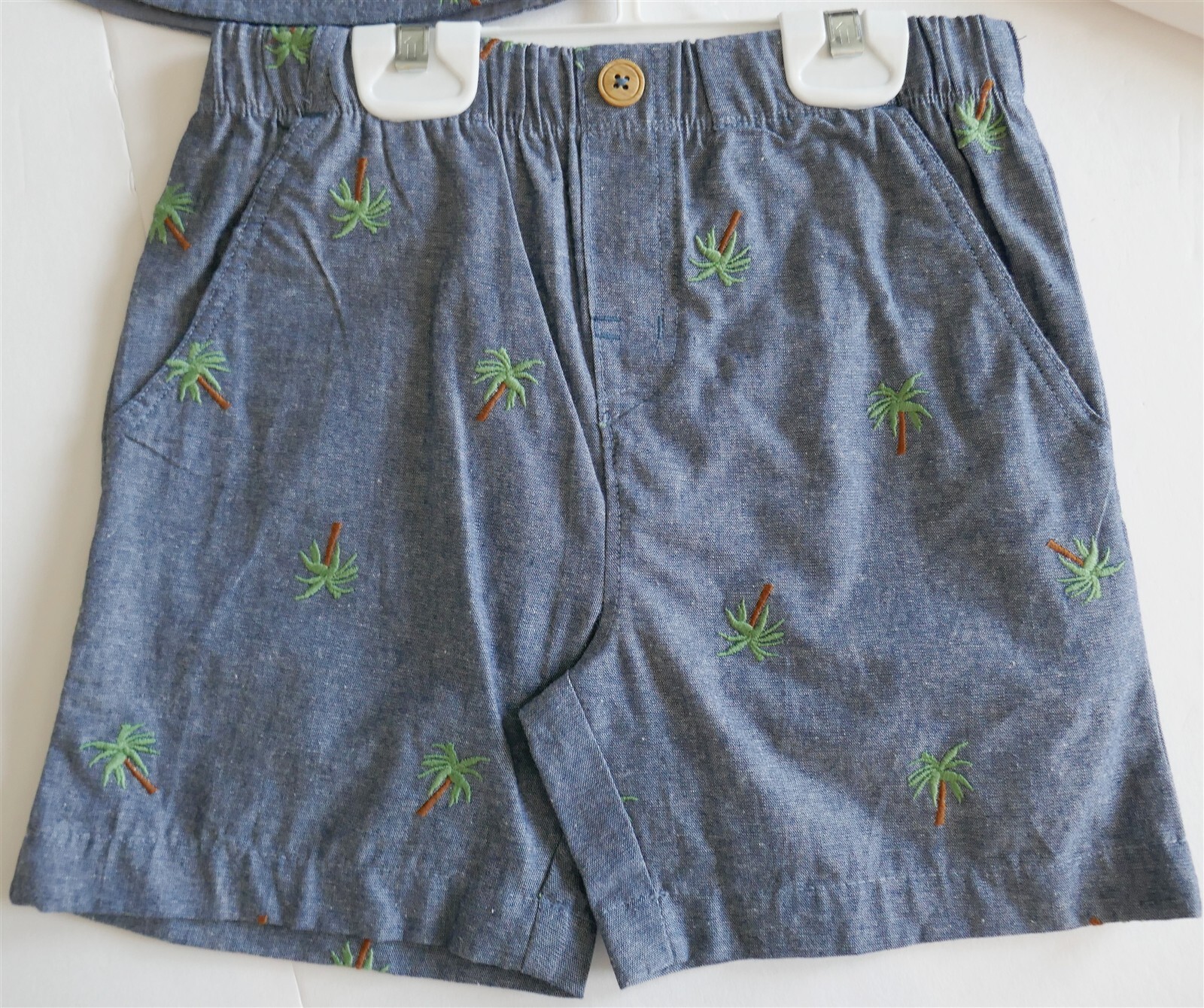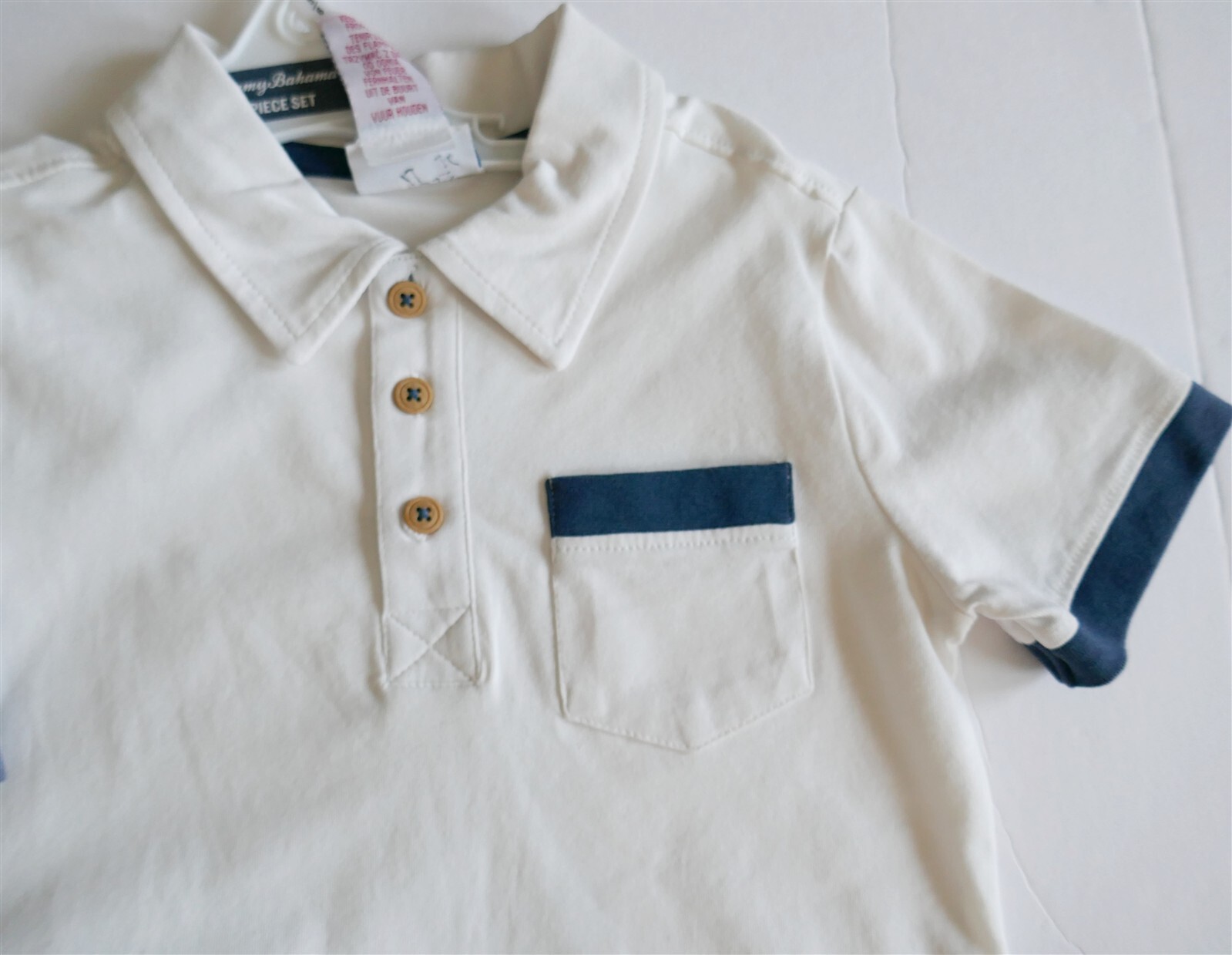 как выглядит NWT Tommy Bahama 3pc SET White Polo Shirt Blue Hat Shorts Boy S 5-6 Palm Trees фото