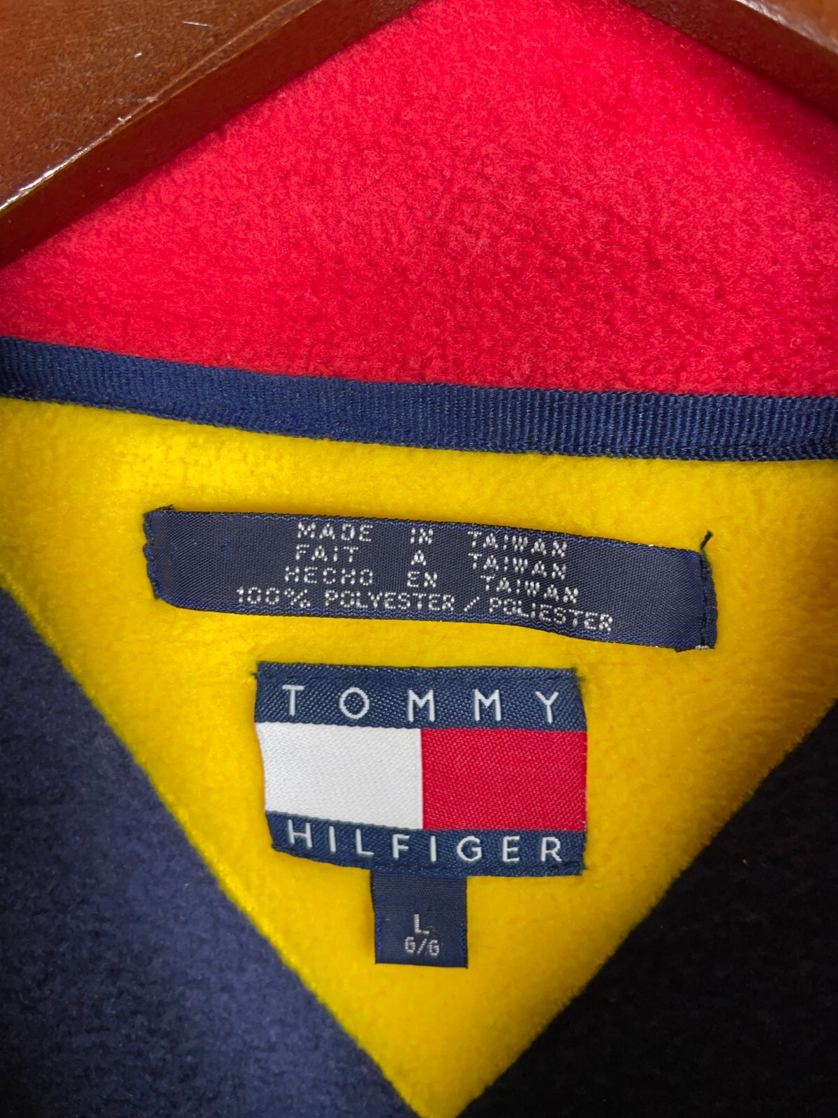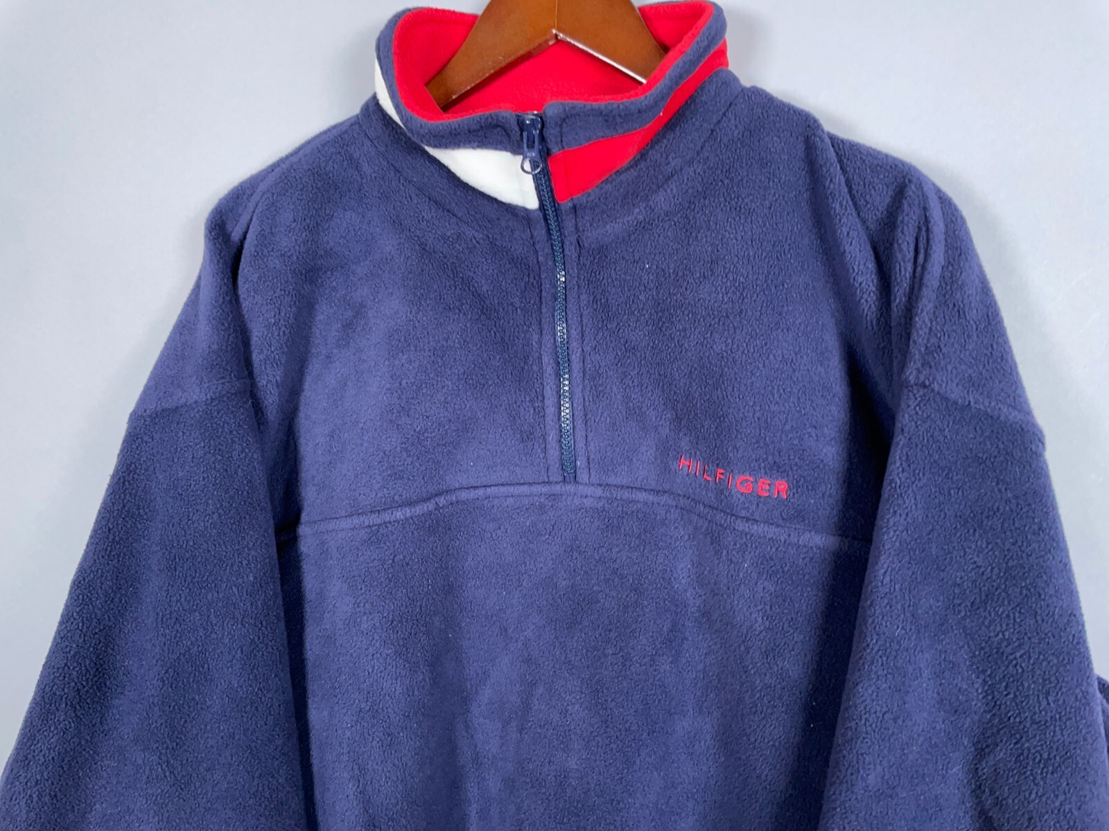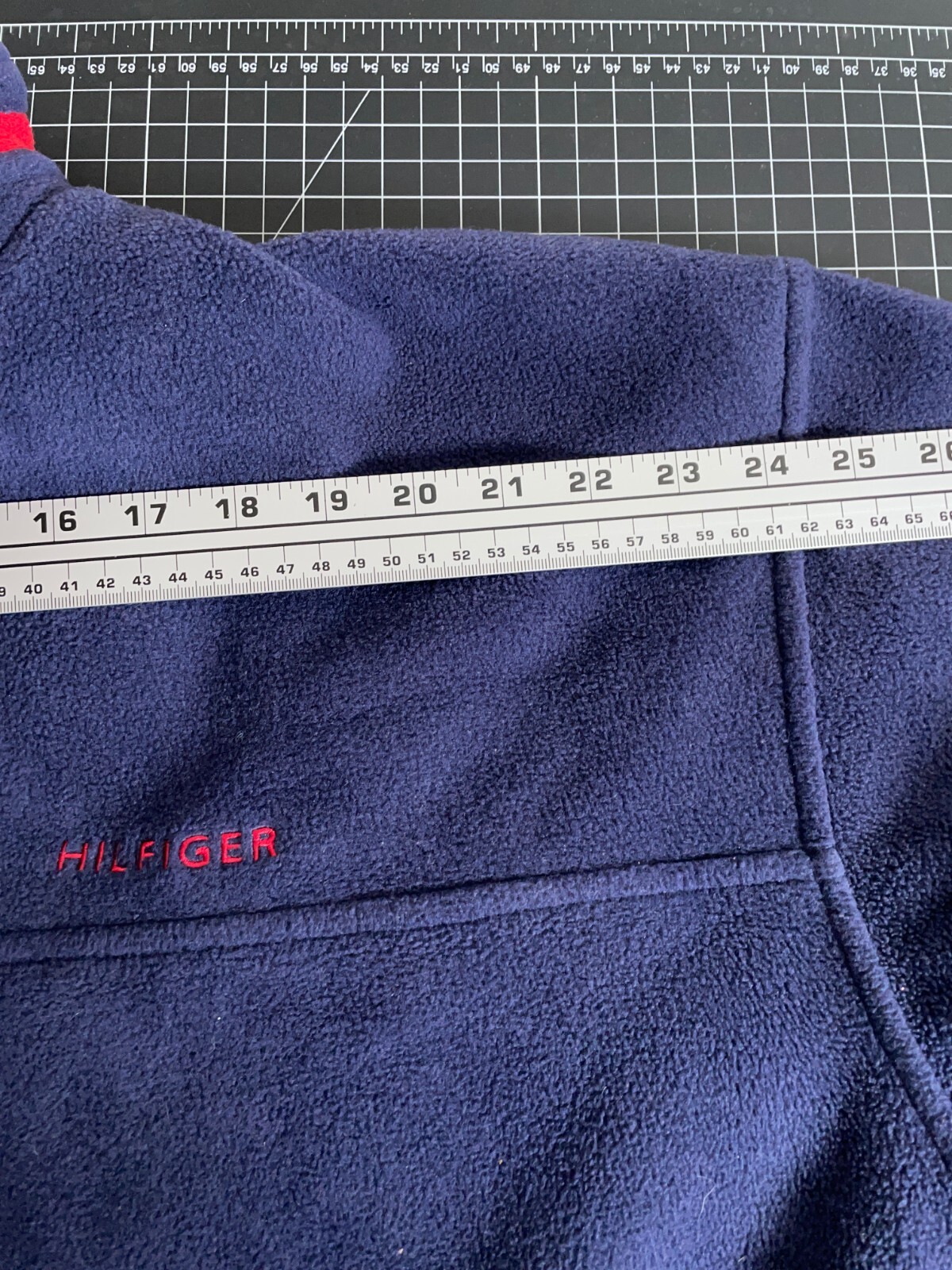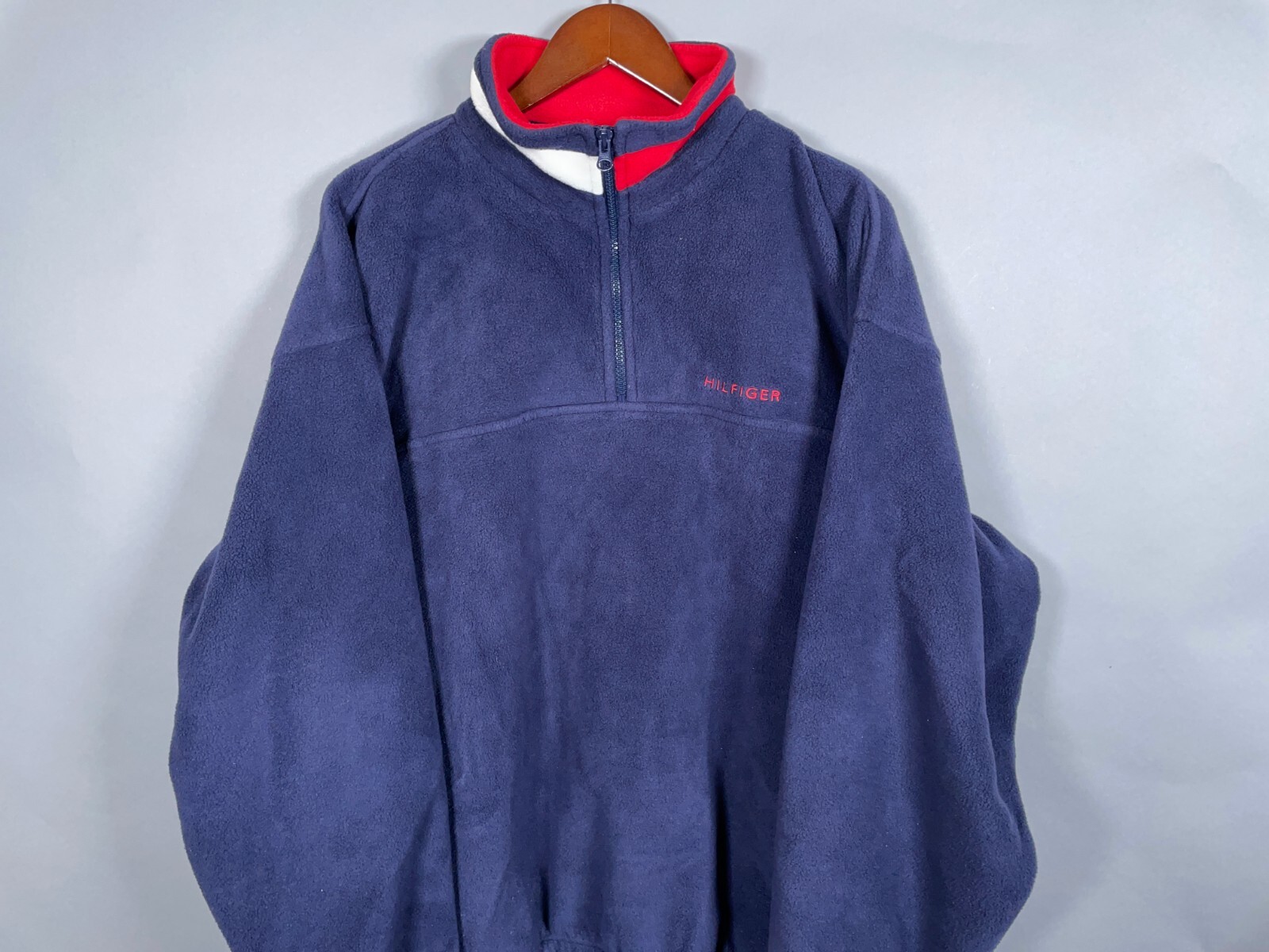 как выглядит VTG 90s Tommy Hilfiger Flag 1/4 Zip Fleece Pullover Adult Large Dark Blue Heavy фото