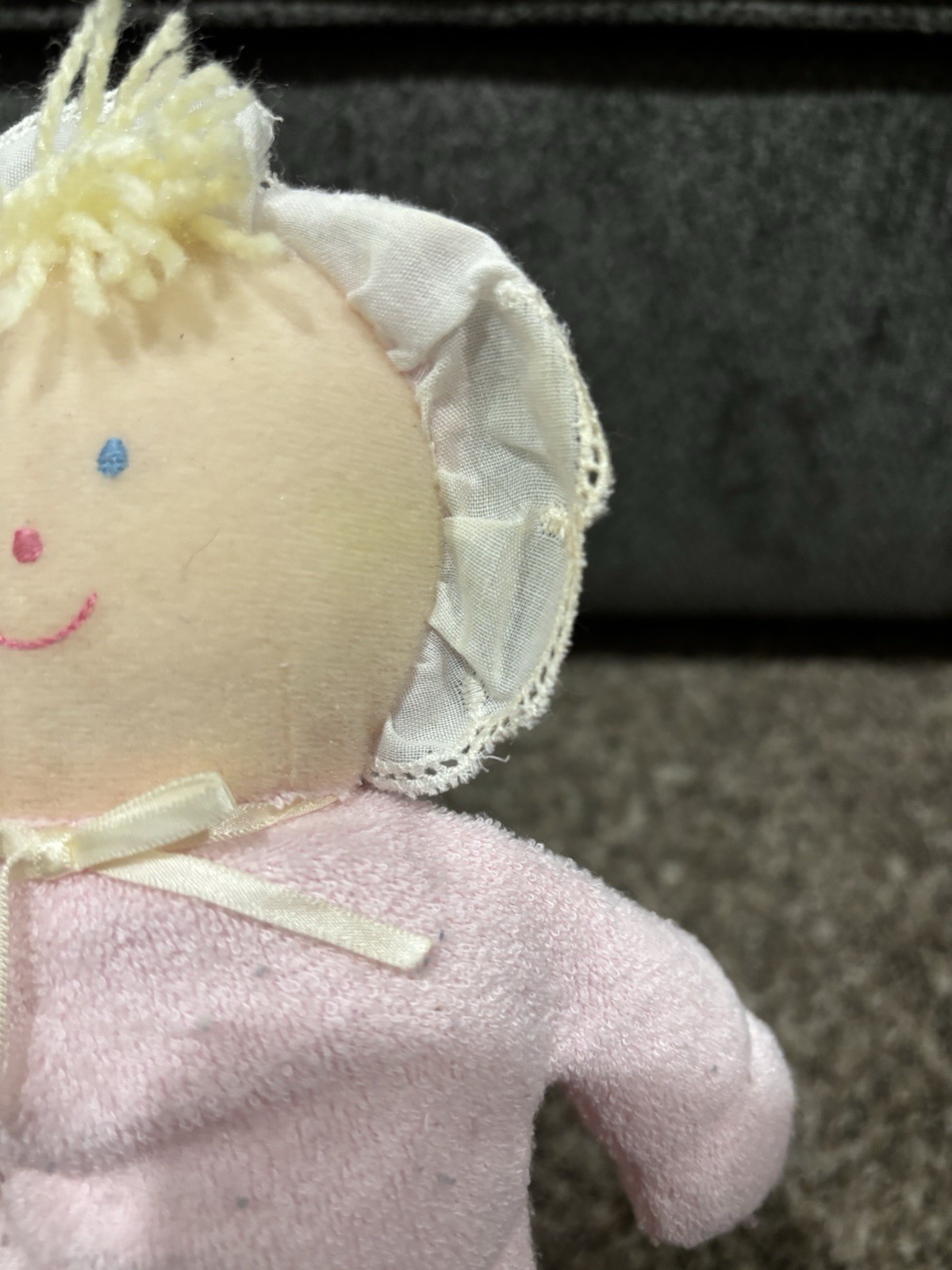 как выглядит Vintage Eden Pink Soft Baby Girl Doll Plush Lovey Terrycloth Blonde Yarn Hair фото