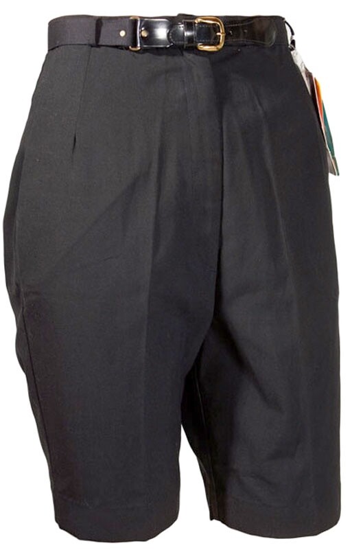 1960s Deadstock Bermuda Shorts High Waist Rayon Blend Twill Black W/ Belt