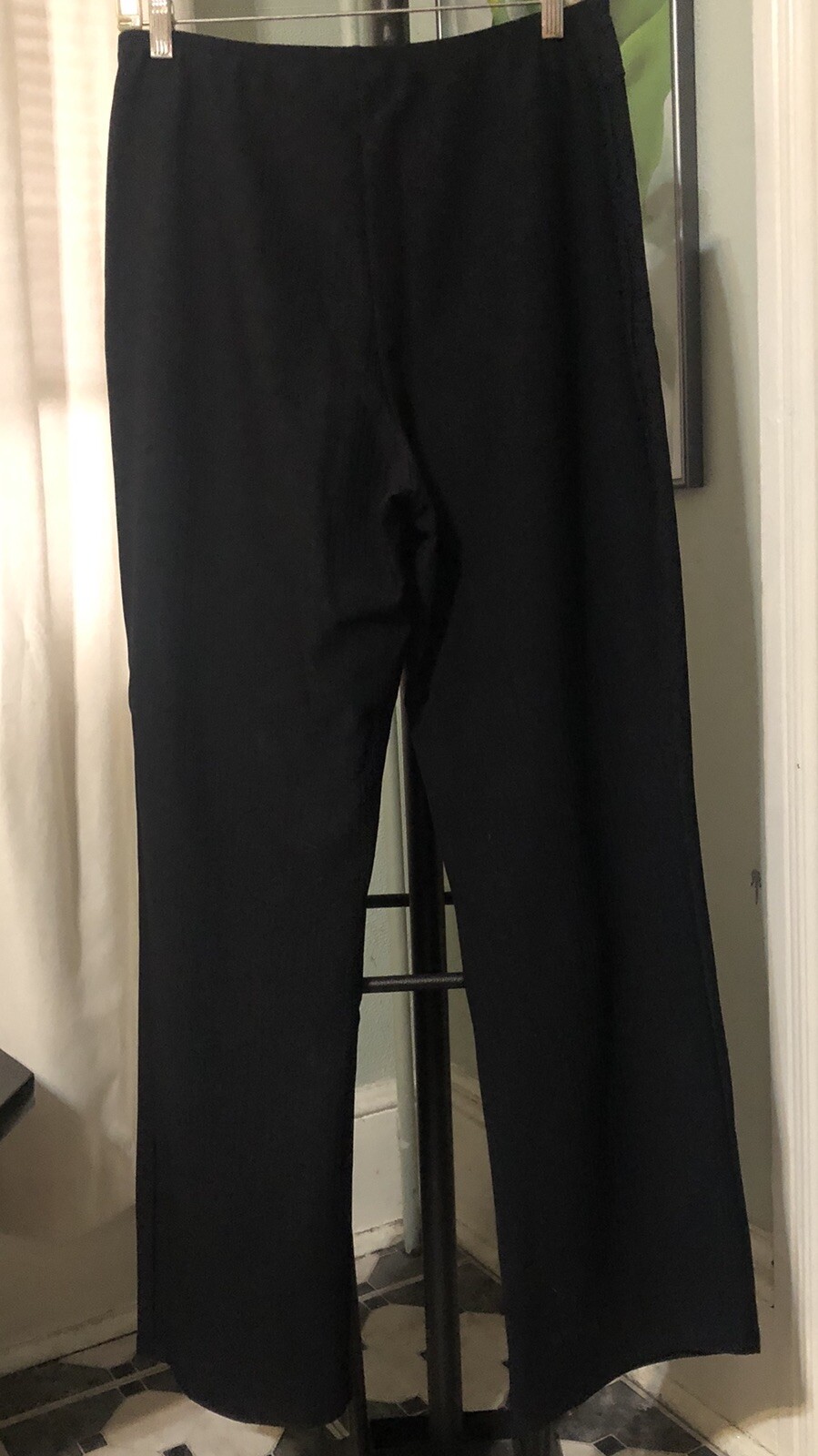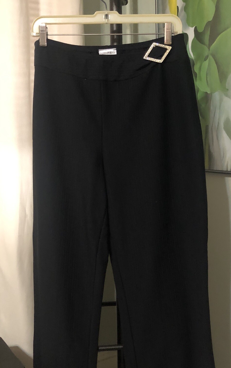 как выглядит Y2K Fashion Bug Mid Rise Flare Pants Black Stretch Large Diamond Buckle VTG фото